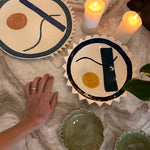 This unique ceramic bowl is hand-made and painted by one of our co-founders, Katia Kelso. The Anatoli Ilio Bowl in small is inspired by the sun and Greek mythology, perfect for hosting family get togethers or displaying as art. This piece is finished with gloss glaze.