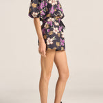 The Antiope Top brings effortless elegance with a touch of tropical charm. Crafted from a dark hibiscus printed cotton poplin, featuring soft purple and cream flowers, this playful silhouette boasts voluminous bubble sleeves and a cropped shape for modern appeal. Lightweight and breathable, the Antiope Top pairs perfectly with the Aegis Skirt or jeans, adding a vibrant yet sophisticated note to your wardrobe.