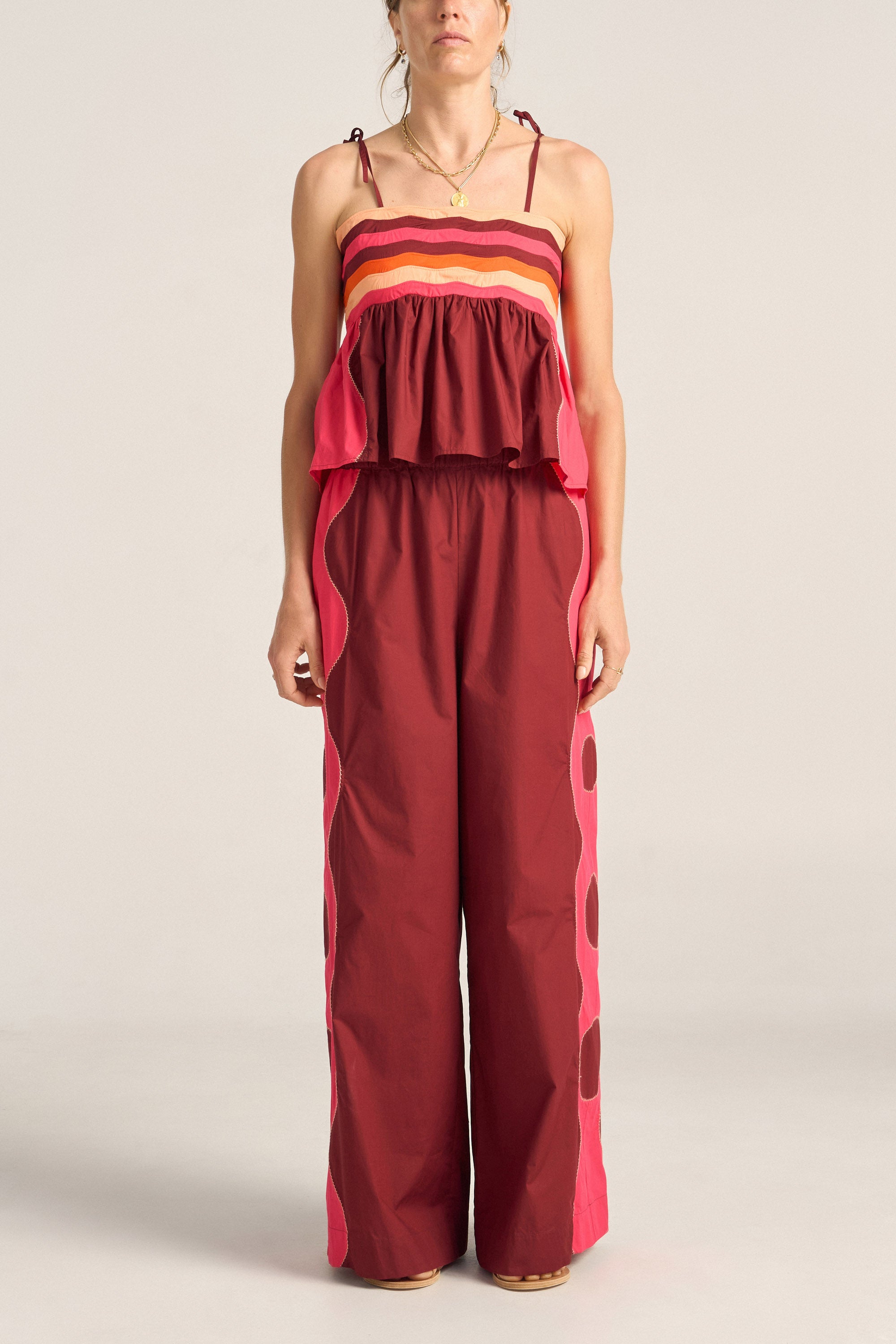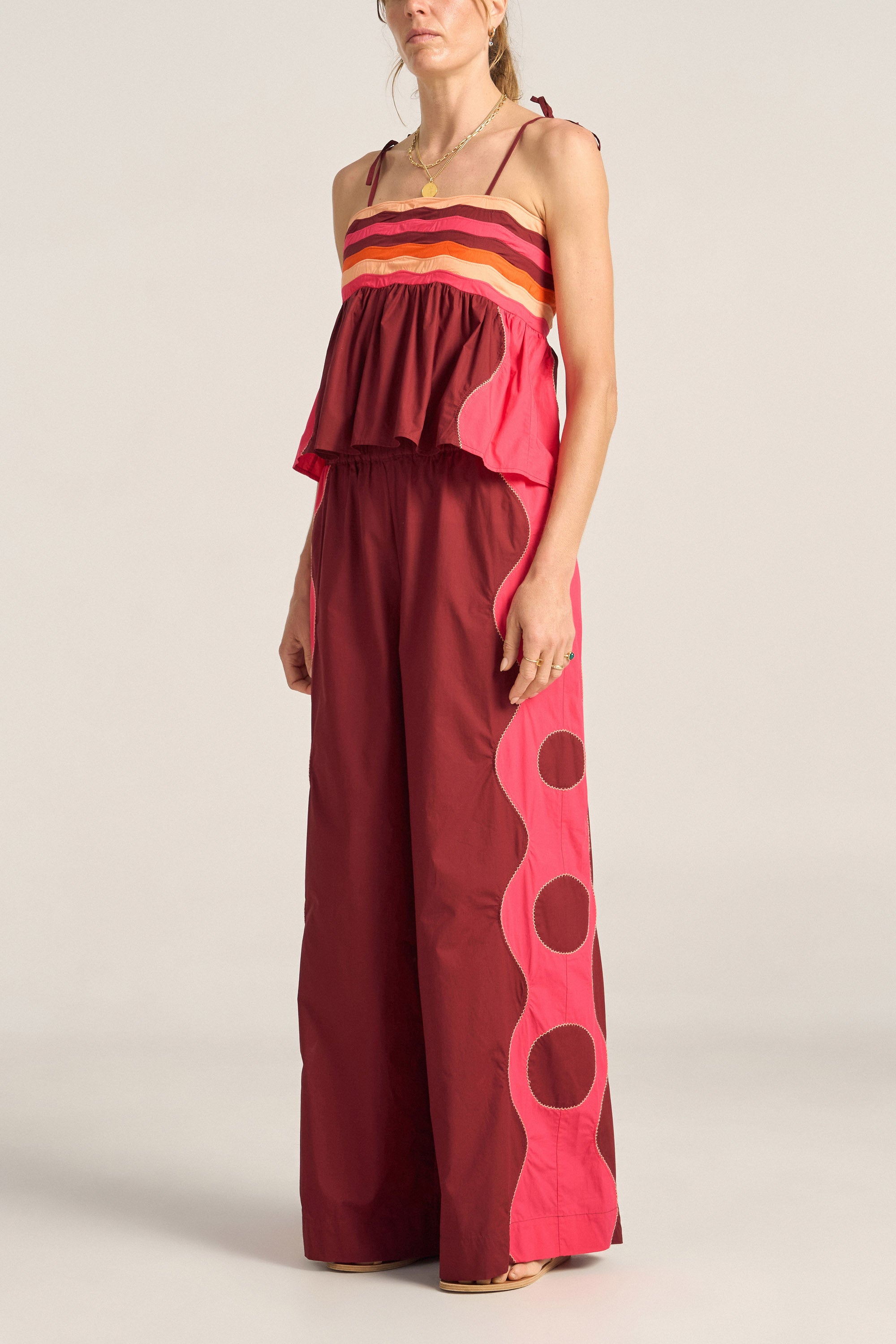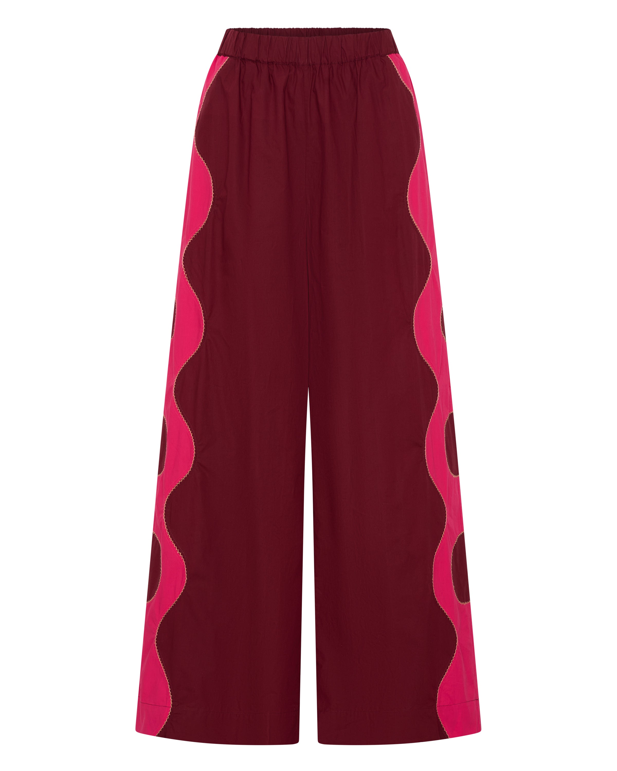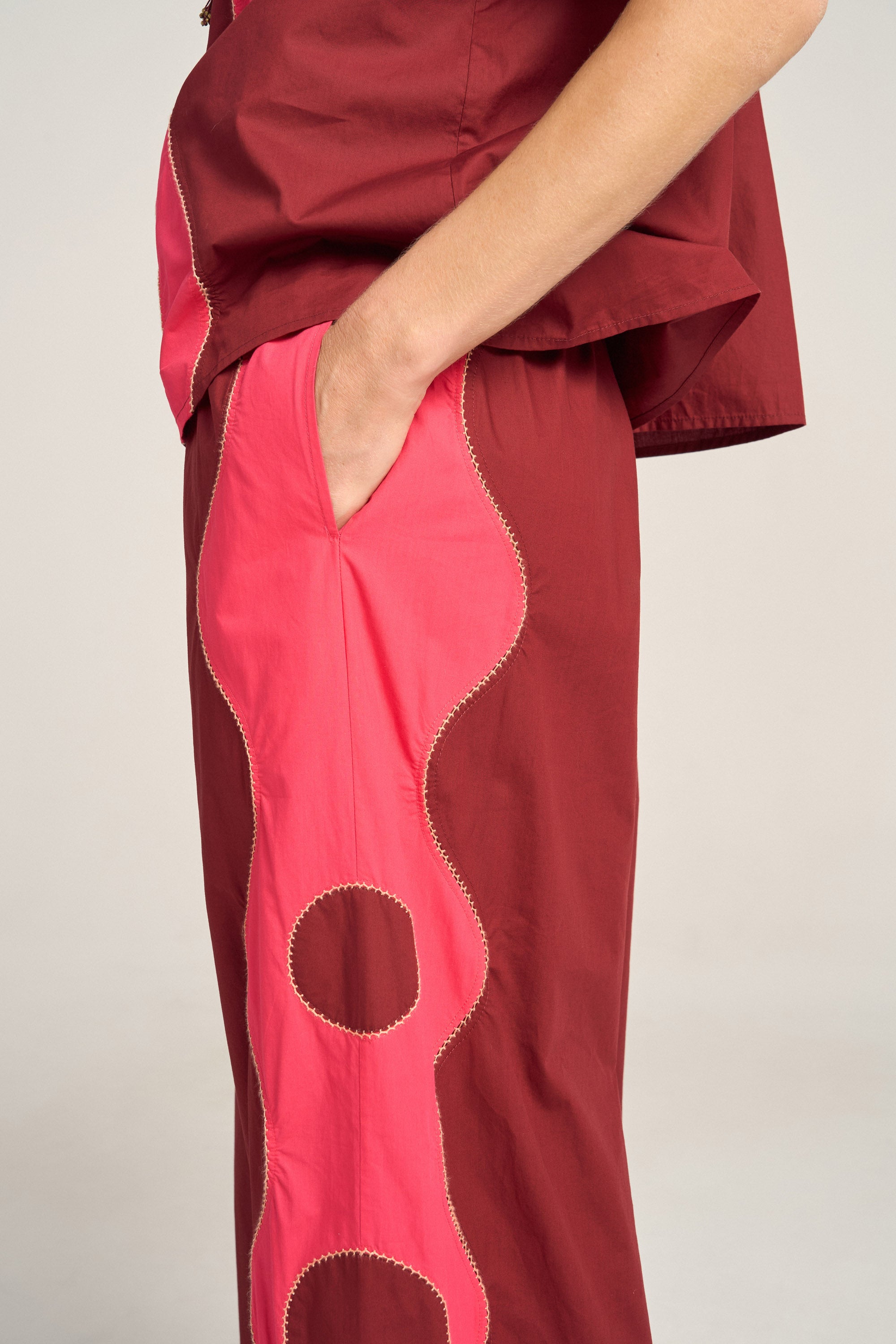 Belus Red & Pink Wave Patchwork Poplin Pants