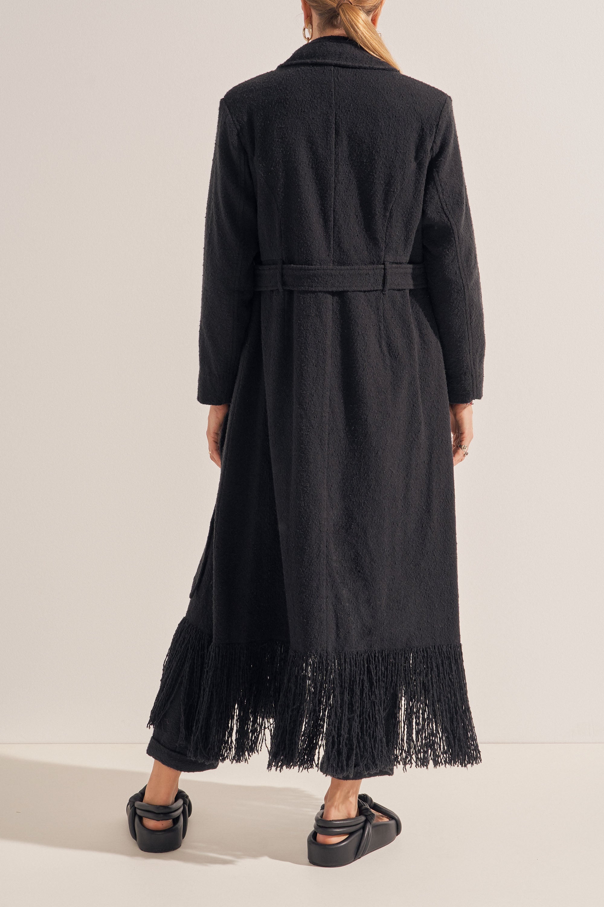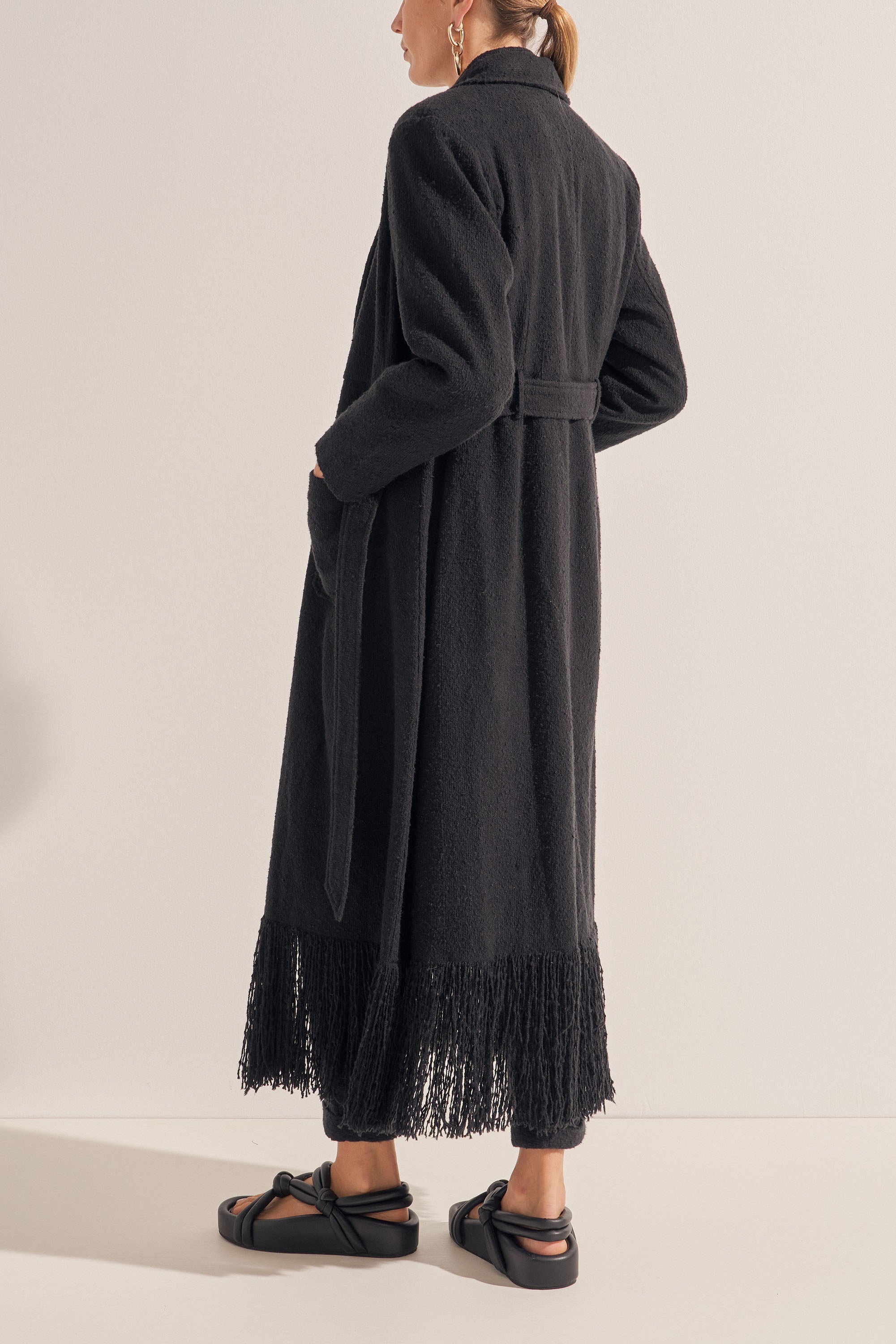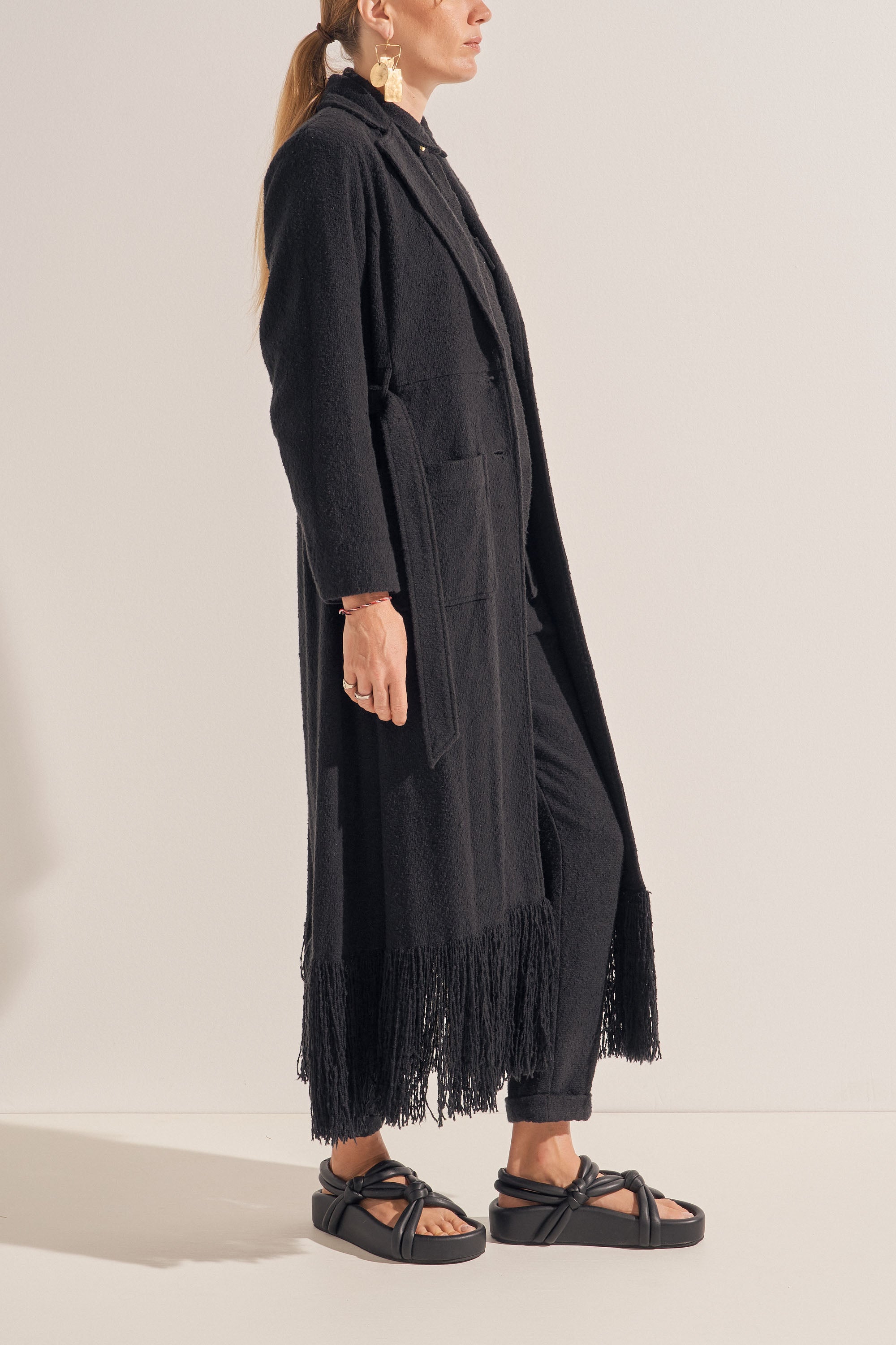 The Crius Coat is hand-woven in the dreamiest cotton boucle creating a rich, warm and textured fabric. This piece features a fringed hem which was created by unravelling the fabric by hand, a separate belt and deep pockets. This luxurious coat is a winter favourite and must-have piece!