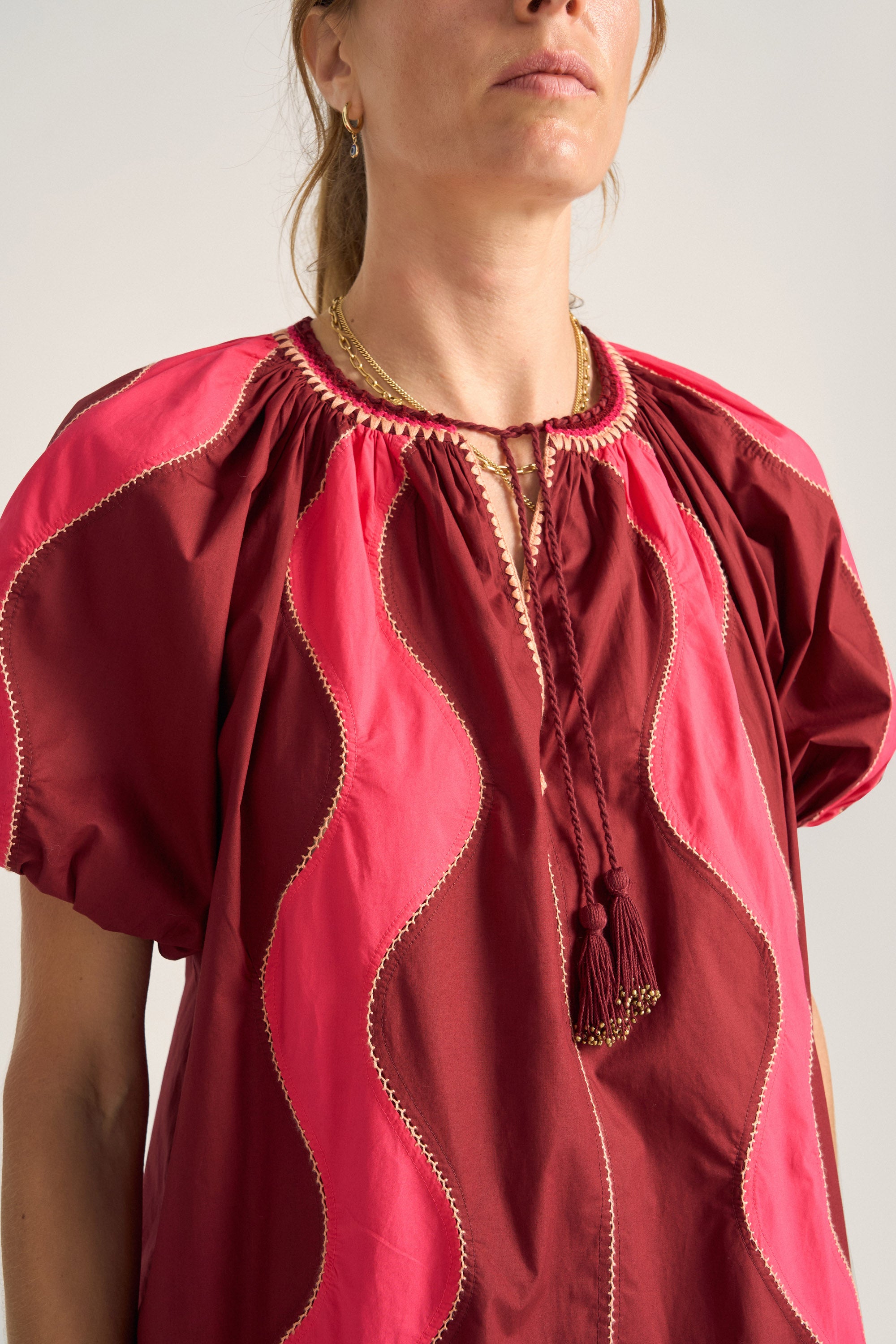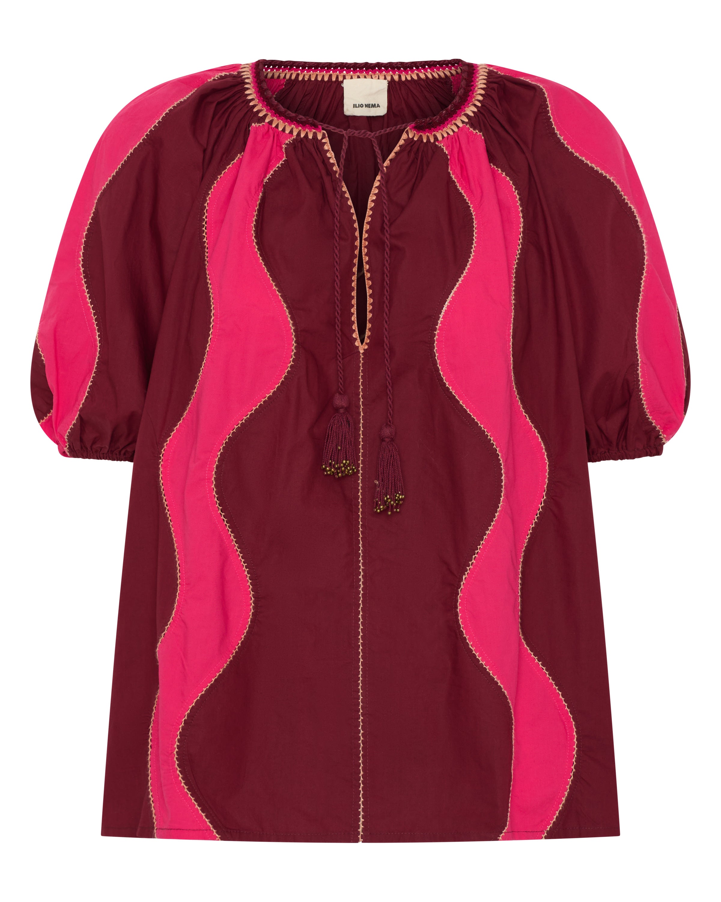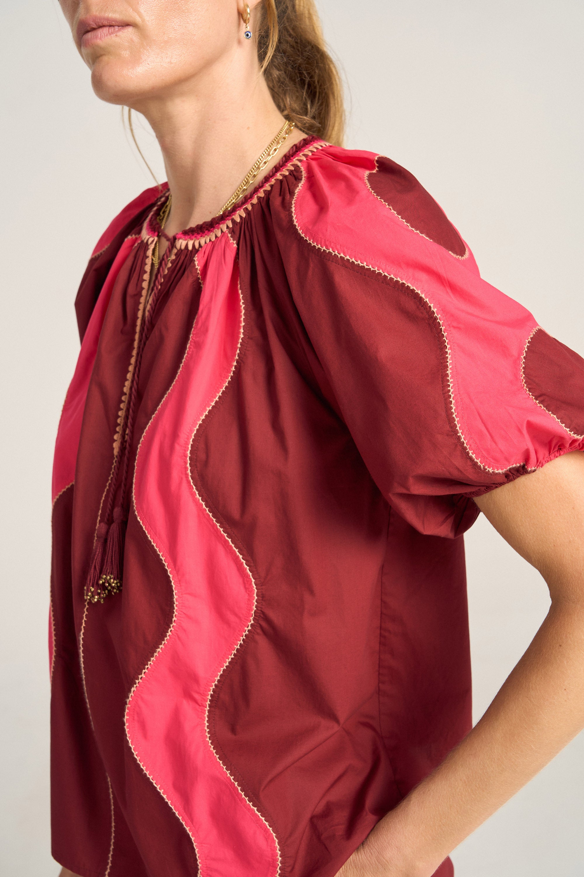 Lybia Red & Pink Wave Patchwork Poplin Shirt