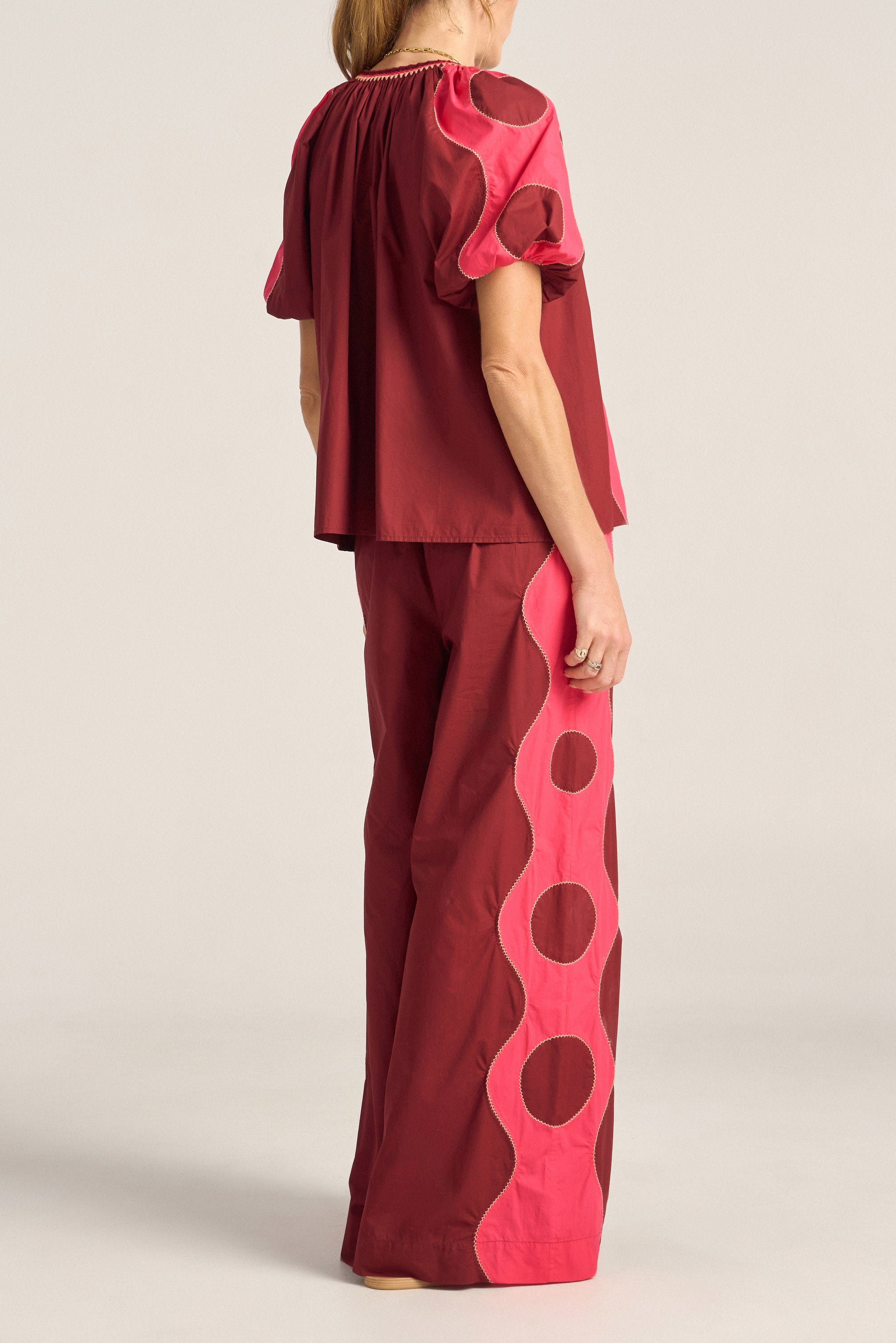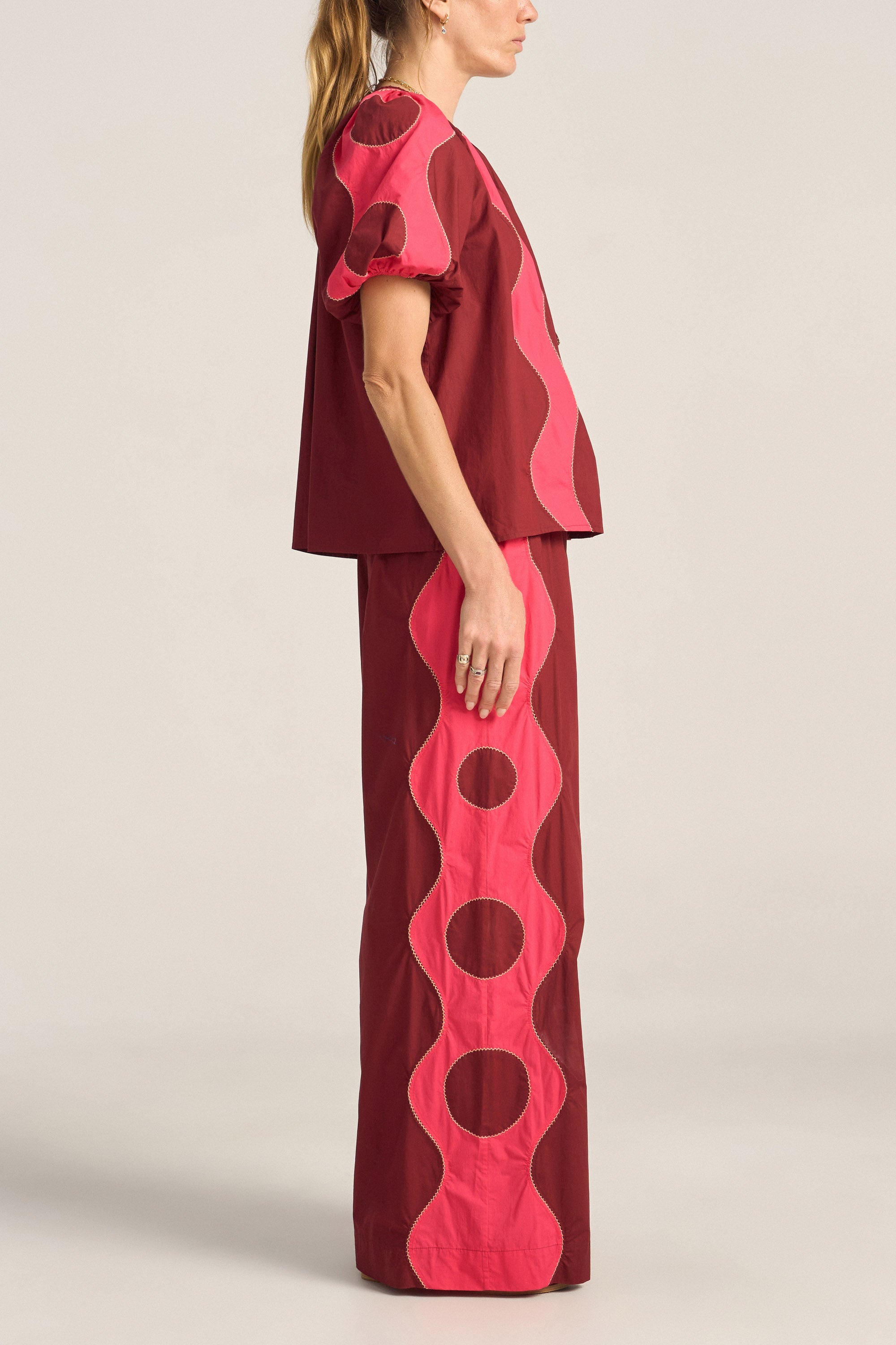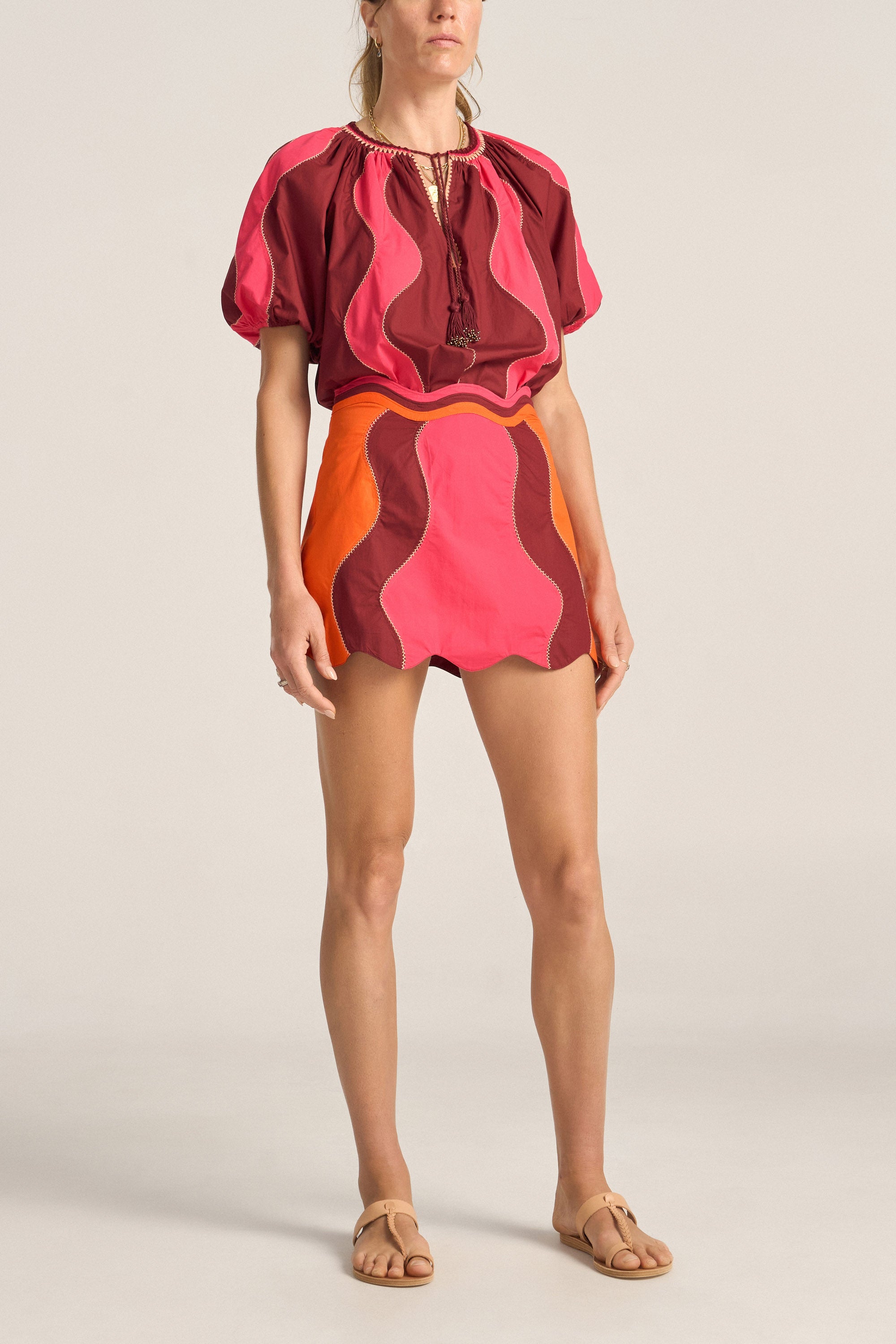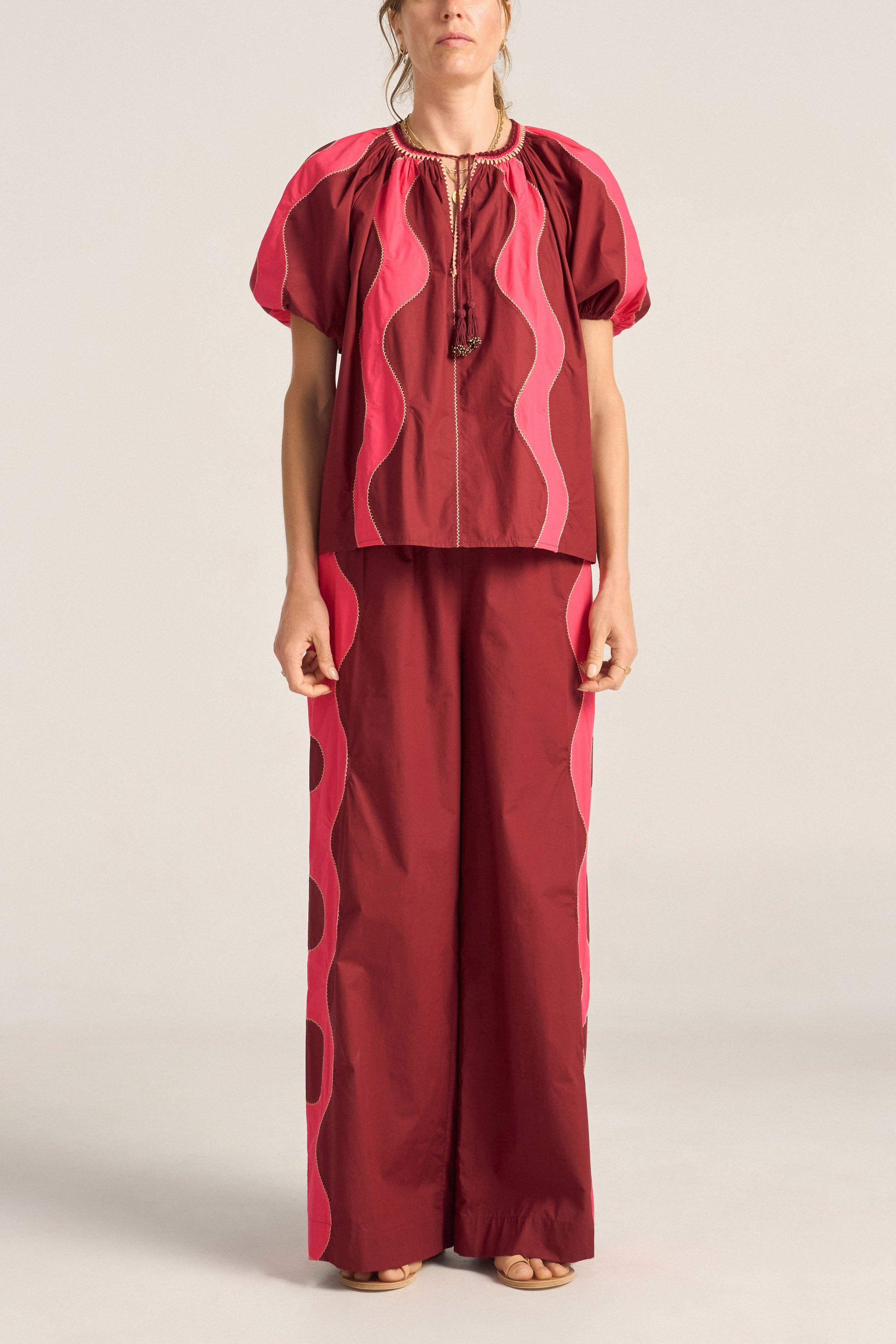 Lybia Red & Pink Wave Patchwork Poplin Shirt