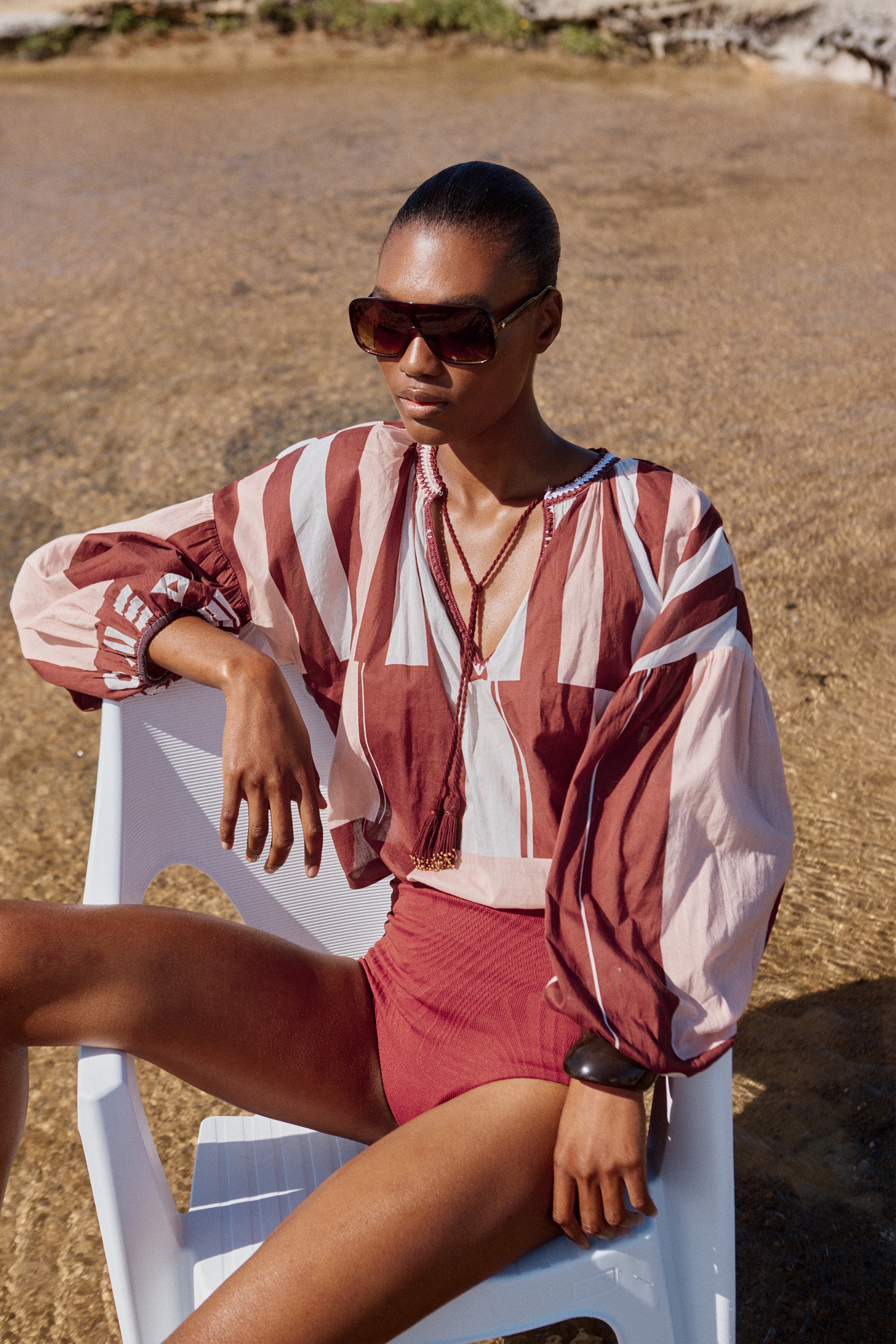 Philomela Red & Pink Wave Patchwork Poplin Dress