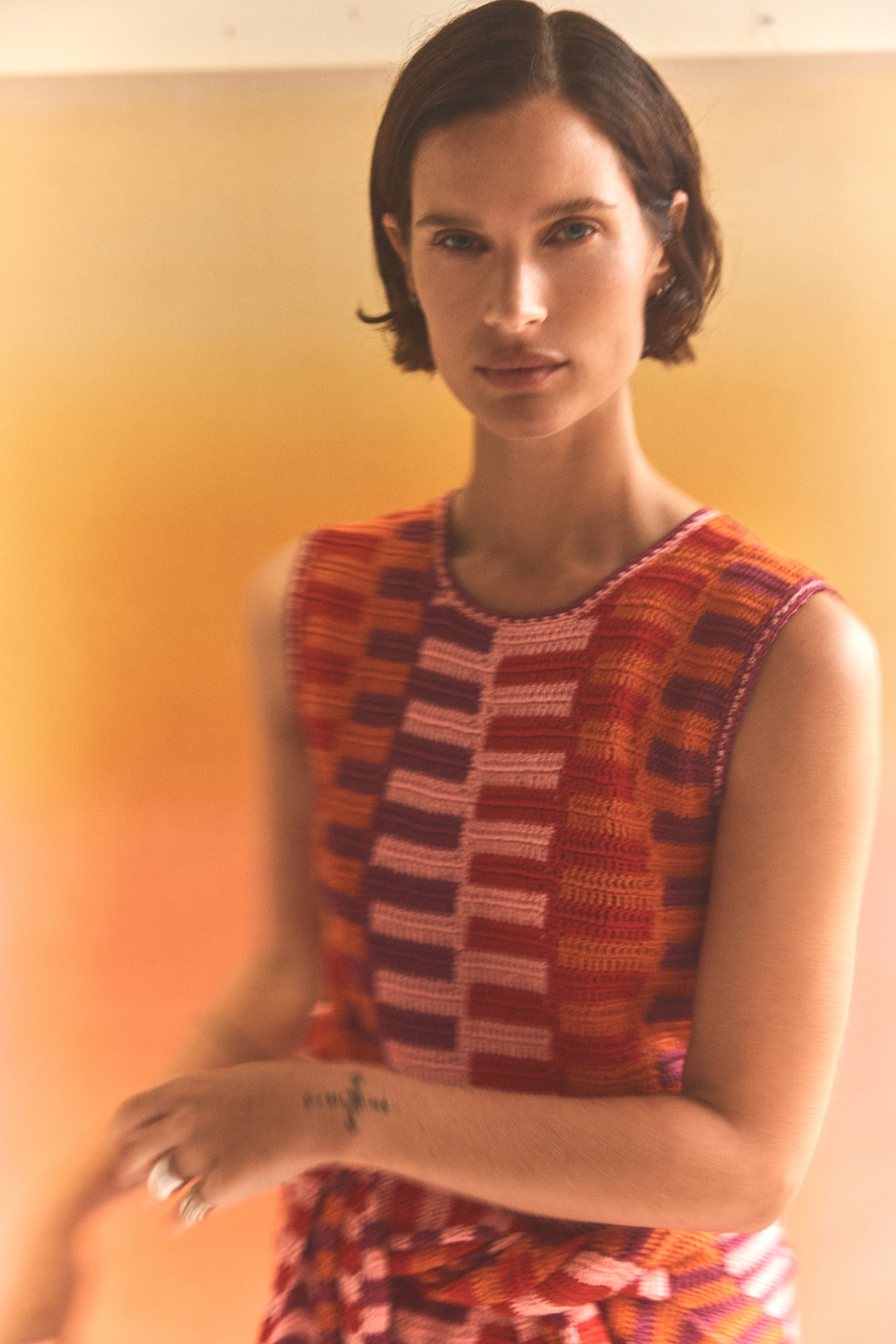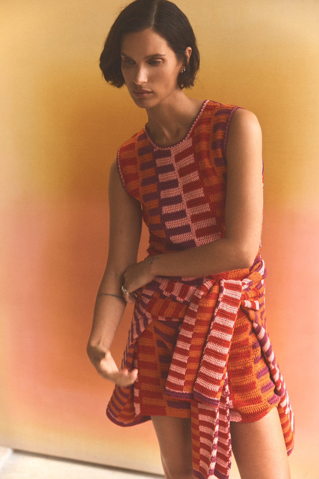 The Aero Dress features a bold geometric design, hand-crocheted by skilled artisans in Peru from luxurious mercerised Pima cotton. With its slim, mini-length silhouette, it's a versatile summer piece that can be dressed up for evening events or dressed down for daytime wear. A perfect blend of craftsmanship and style, this dress brings effortless elegance to any occasion