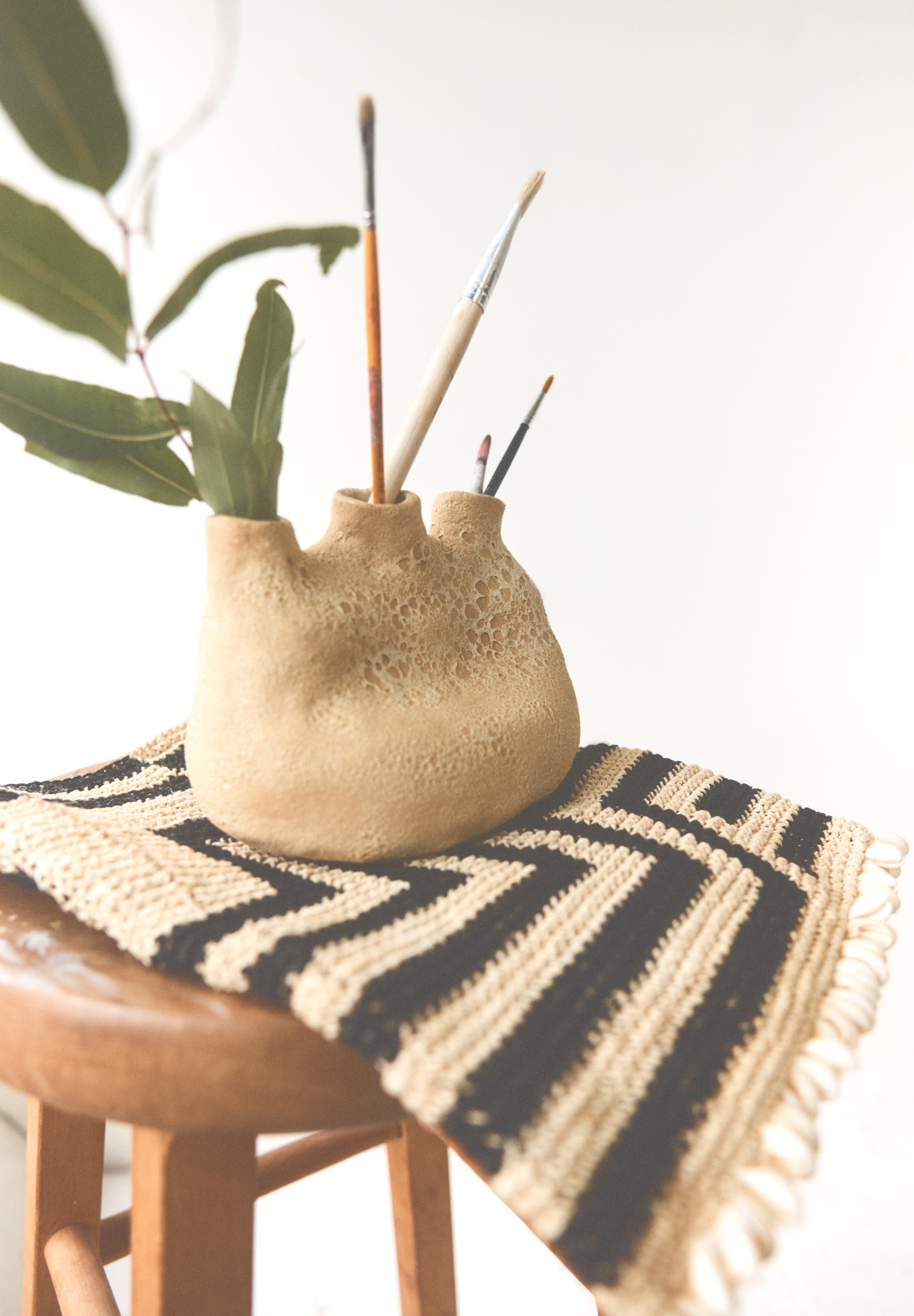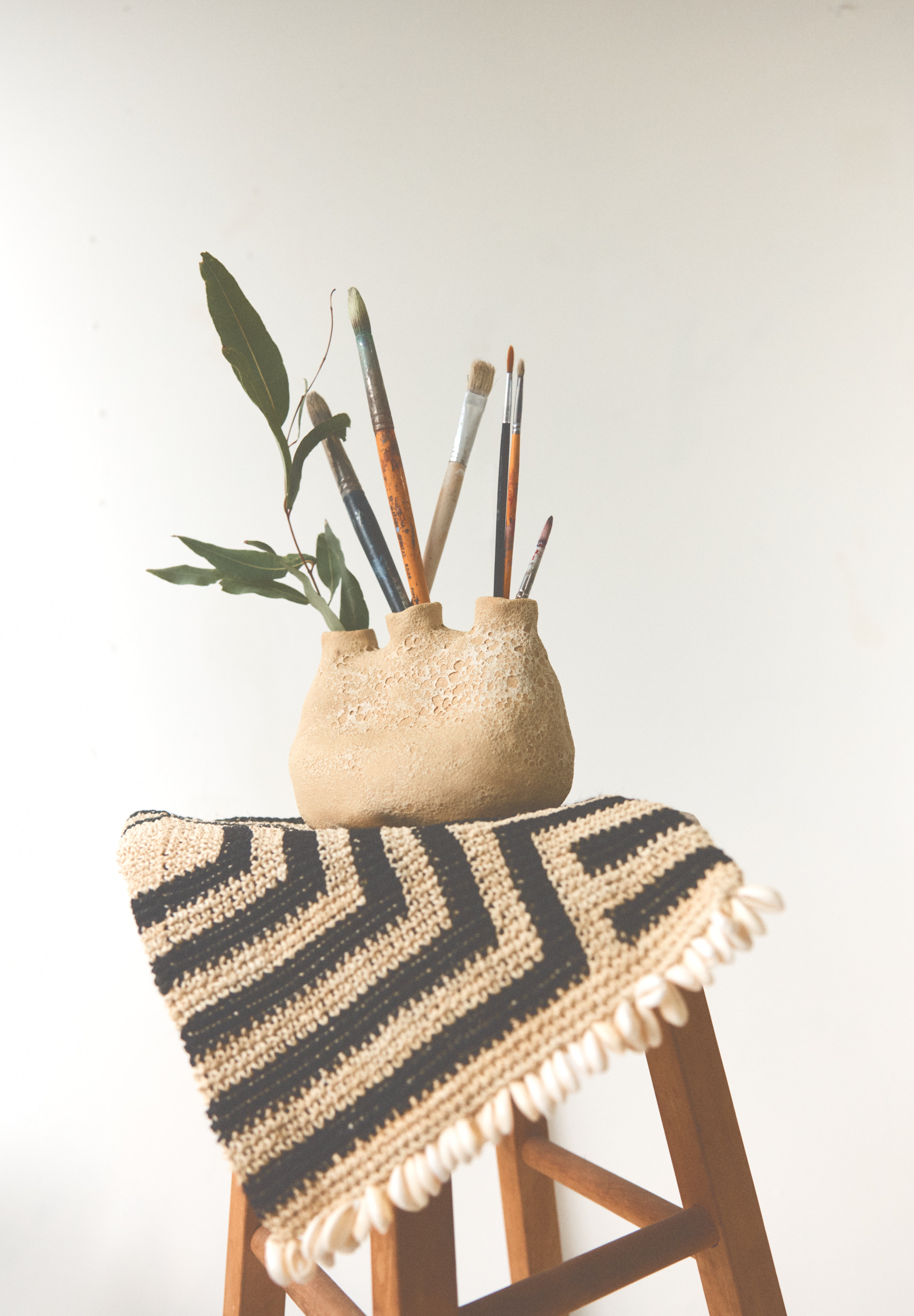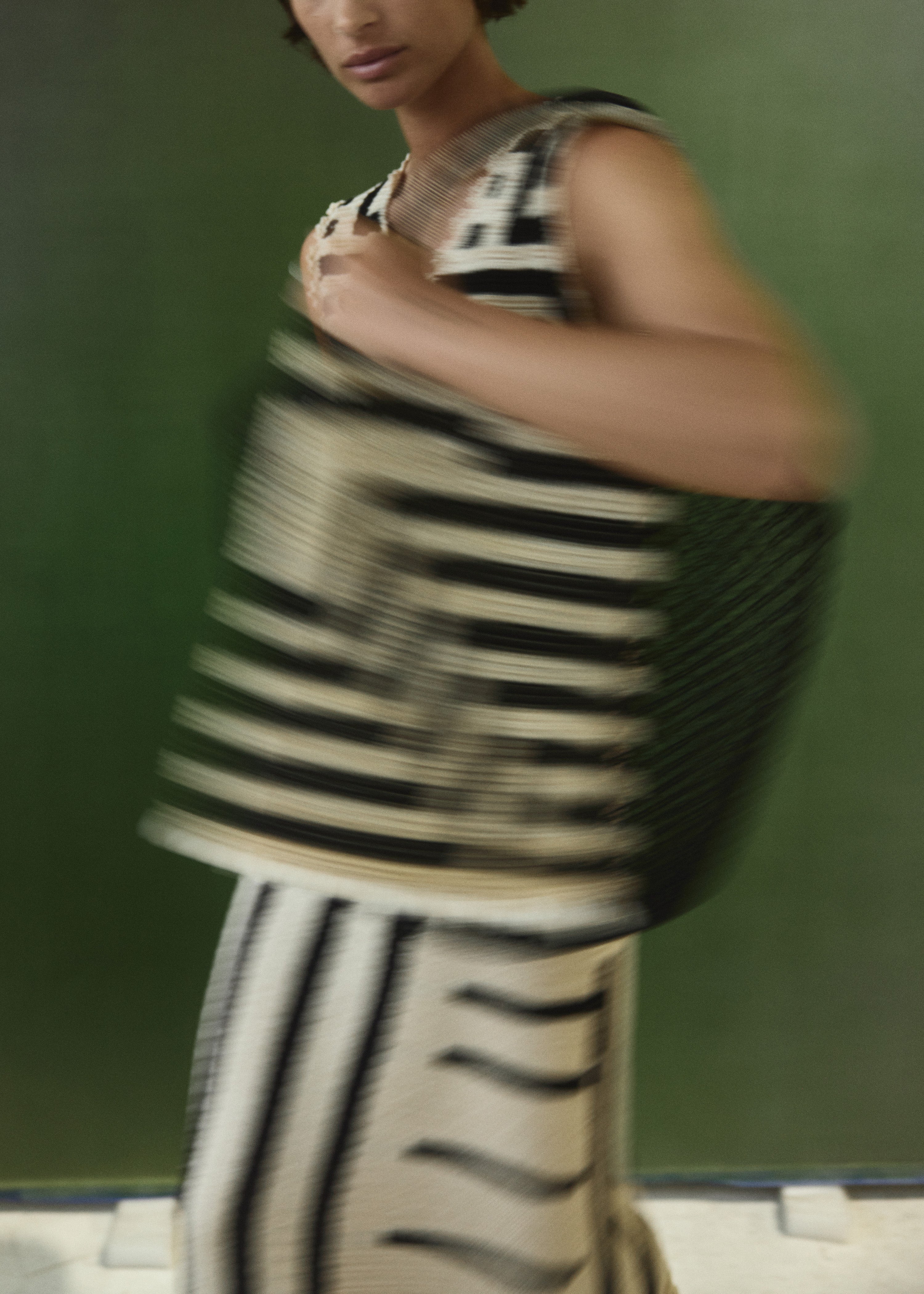 The Icarus Chambira Tote in black and white features an asymmetrical stripe design, handwoven and adorned with seashells. Made from Chambira, a palm native to the Amazon Rainforest, it showcases exceptional Peruvian craftsmanship. The fibre is naturally dyed with local plants and hand-crocheted for a unique finish. Perfect as a statement piece with jeans or paired with the Calais Top or Camilla Dress for a coordinated look.