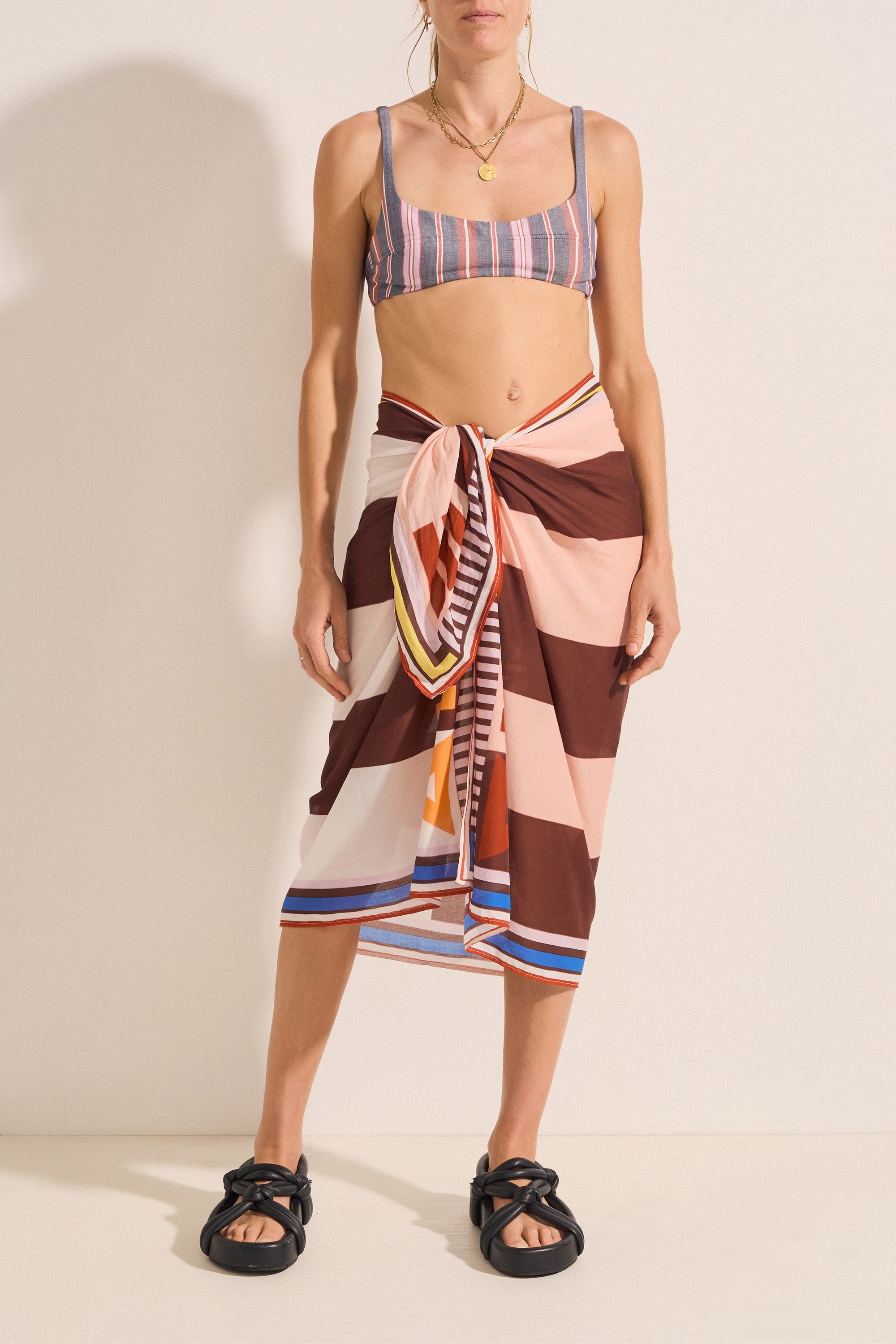 The Katia Beach Sarong is the ultimate summer essential, designed with a timeless ILIO NEMA stripe pattern in vibrant multi-coloured motifs. Its edges are delicately adorned with our signature monogram symbols, adding an exclusive touch. Crafted from the softest organic cotton voile, it feels luxurious against the skin while offering versatility with multiple styling options. Whether draped over the shoulders, wrapped around the waist, or styled as a chic beach cover-up, the Katia Beach Sarong is the perfect companion for sunny days by the sea