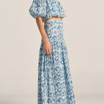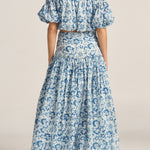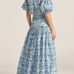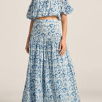 The Merope Skirt is a sculptural take on feminine elegance. Crafted in a soft indigo batik printed voile, this maxi-length silhouette has a fitted hip yoke, with a richly gathered tier that bubbles into the lining at the hemline for a modern appeal. A discreet invisible side zip ensures ease of wear. With its dramatic shape and fluid movement, the Merope Skirt is a standout piece that blends bold design with handcrafted beauty. Pair with the Elli Top for a complete look.