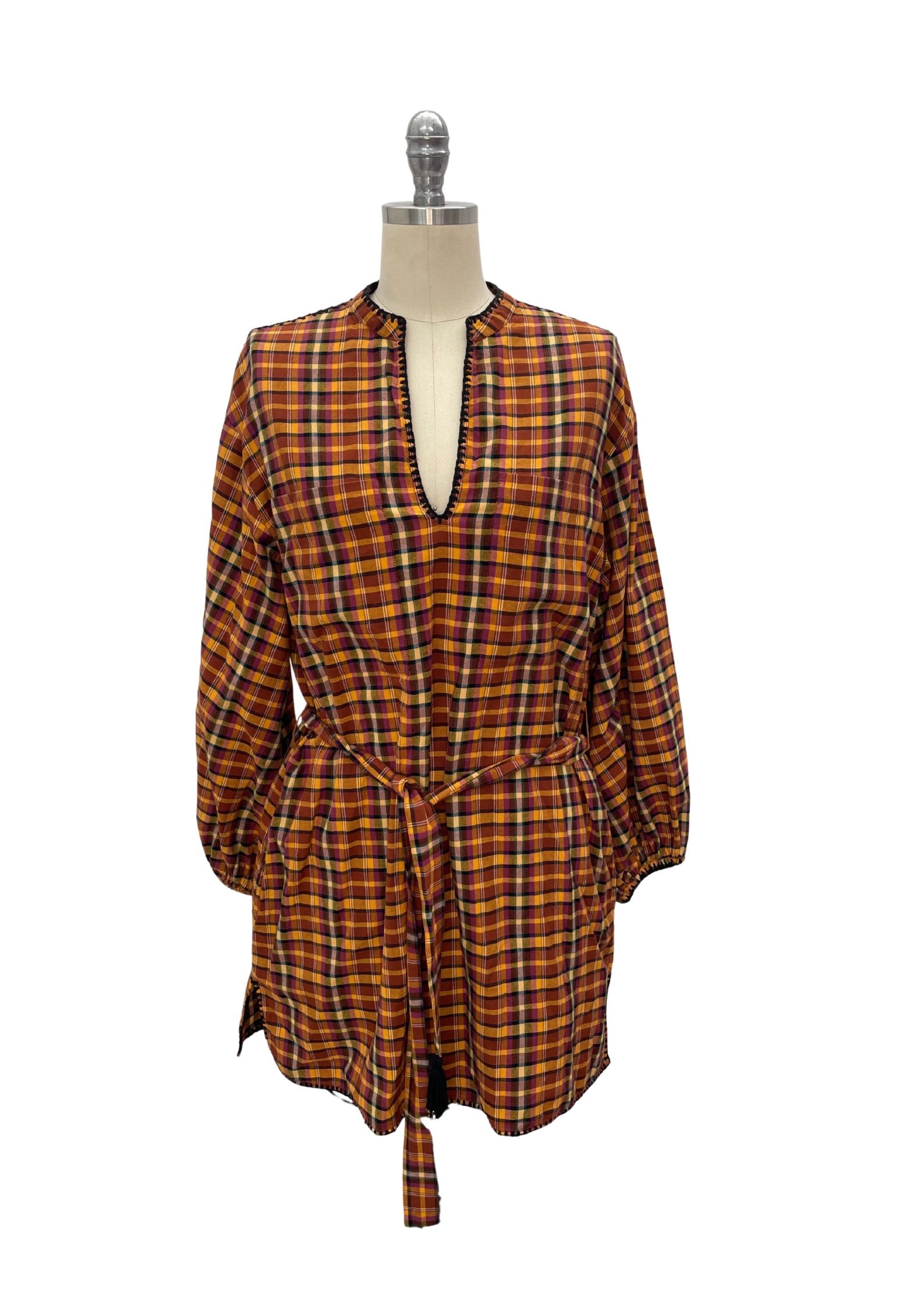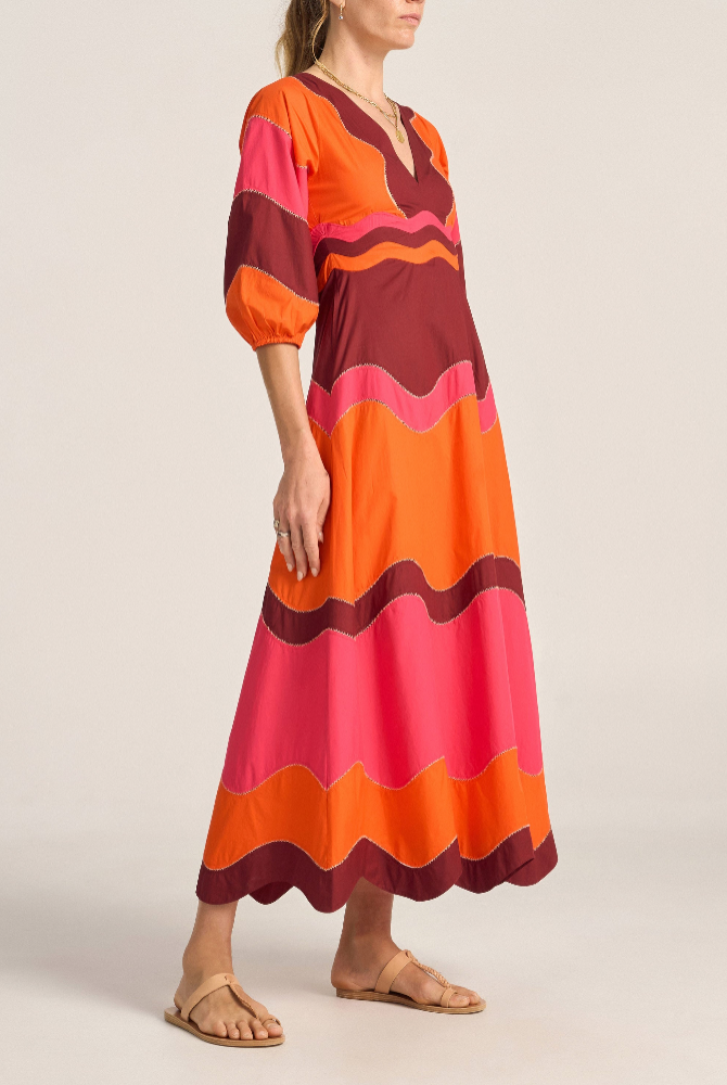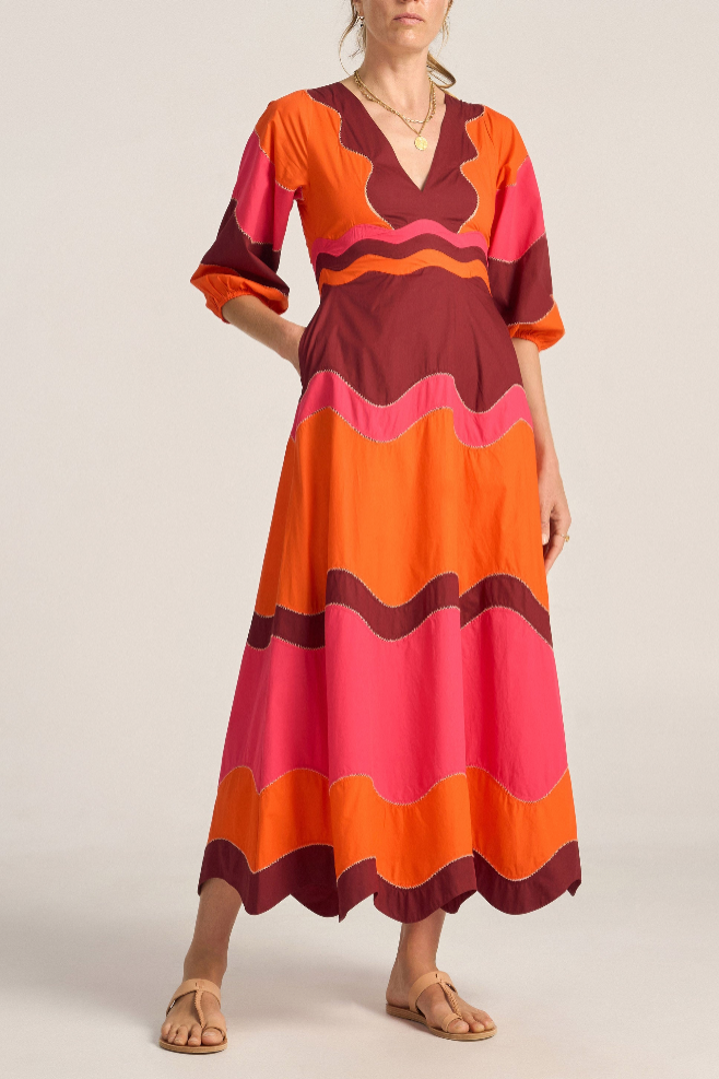 Sample -Dryope Red & Pink Wave Patchwork Poplin Dress