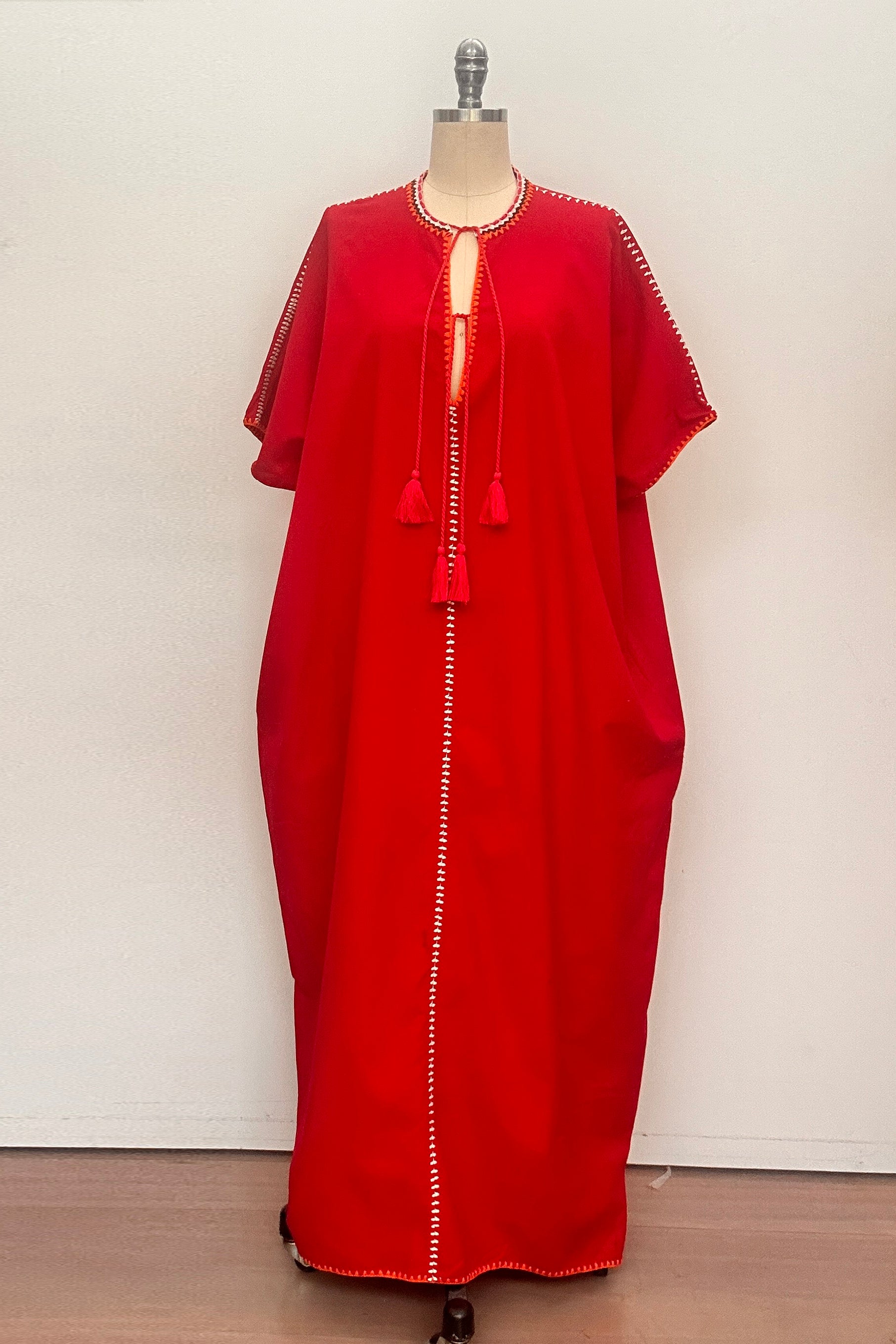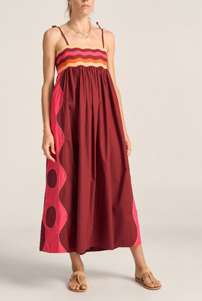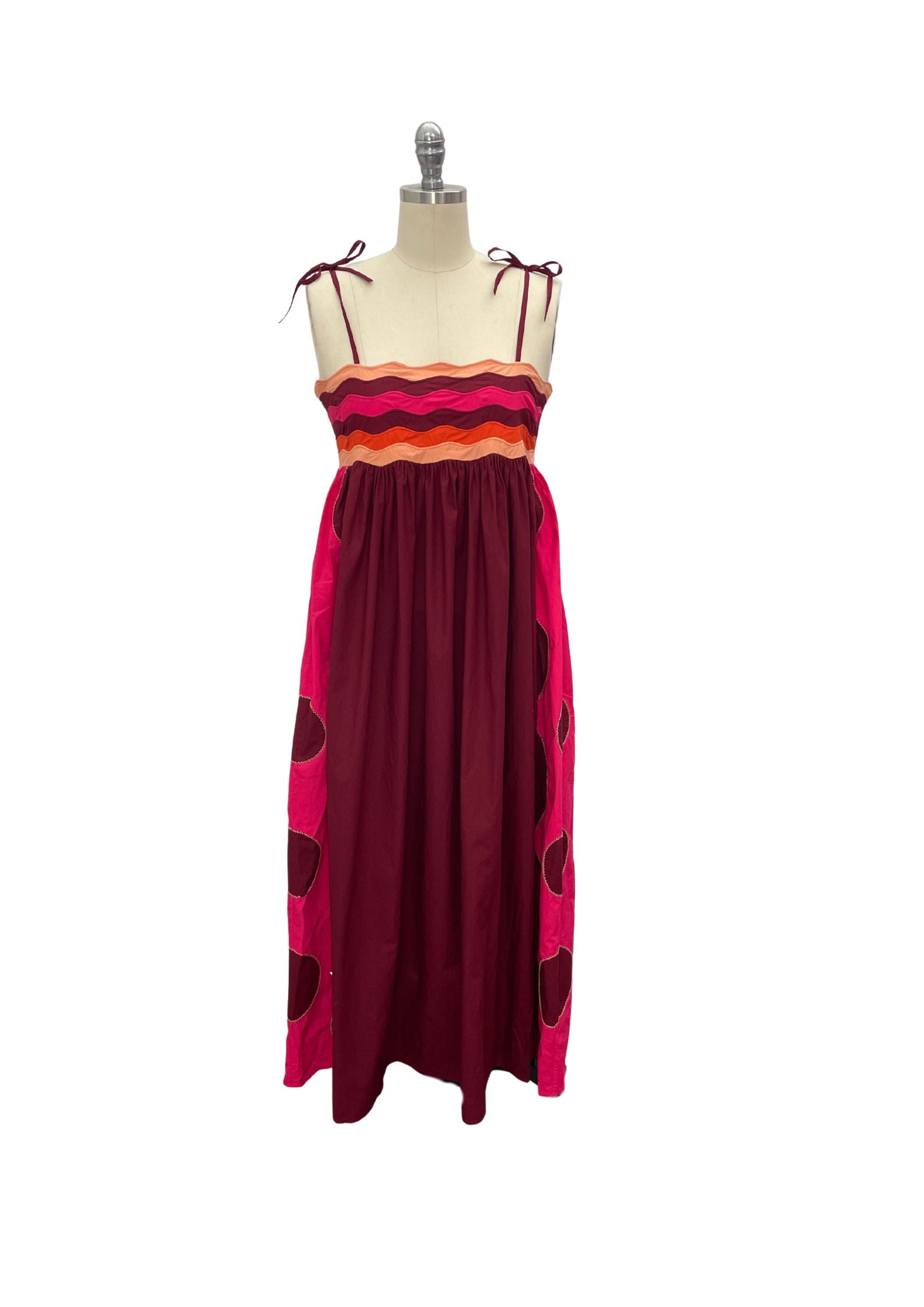 Sample - Philomela Red & Pink Wave Patchwork Poplin Dress