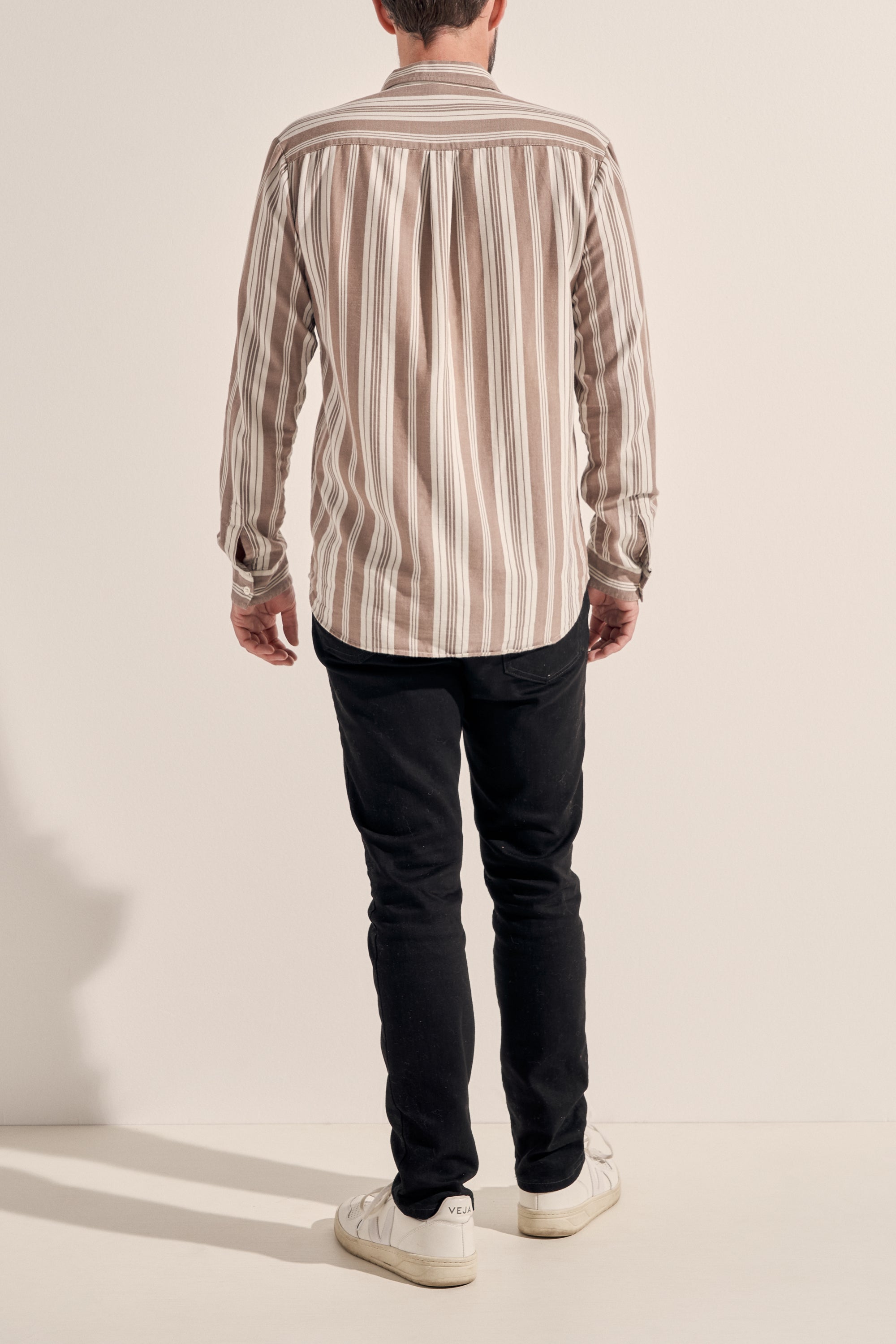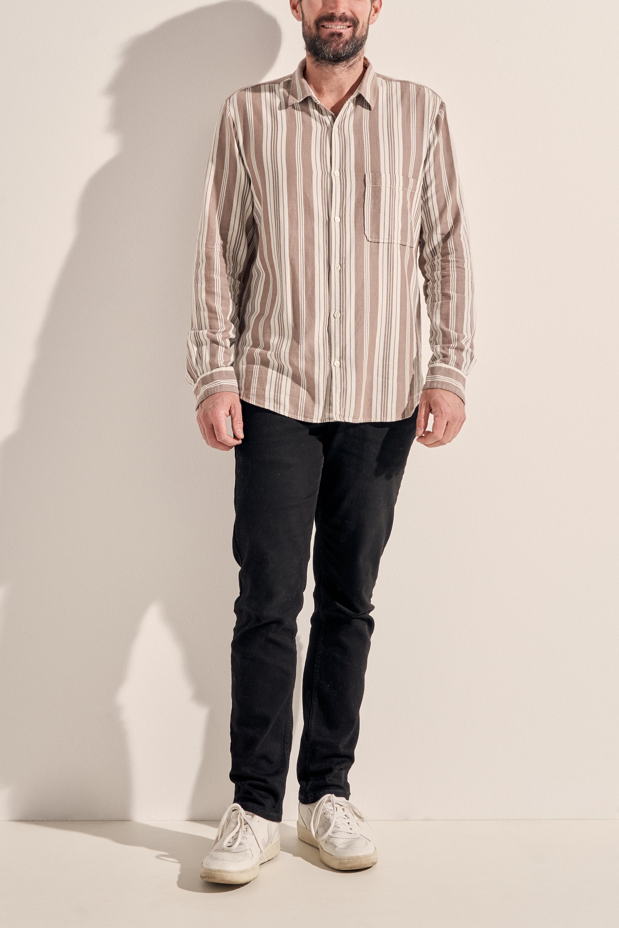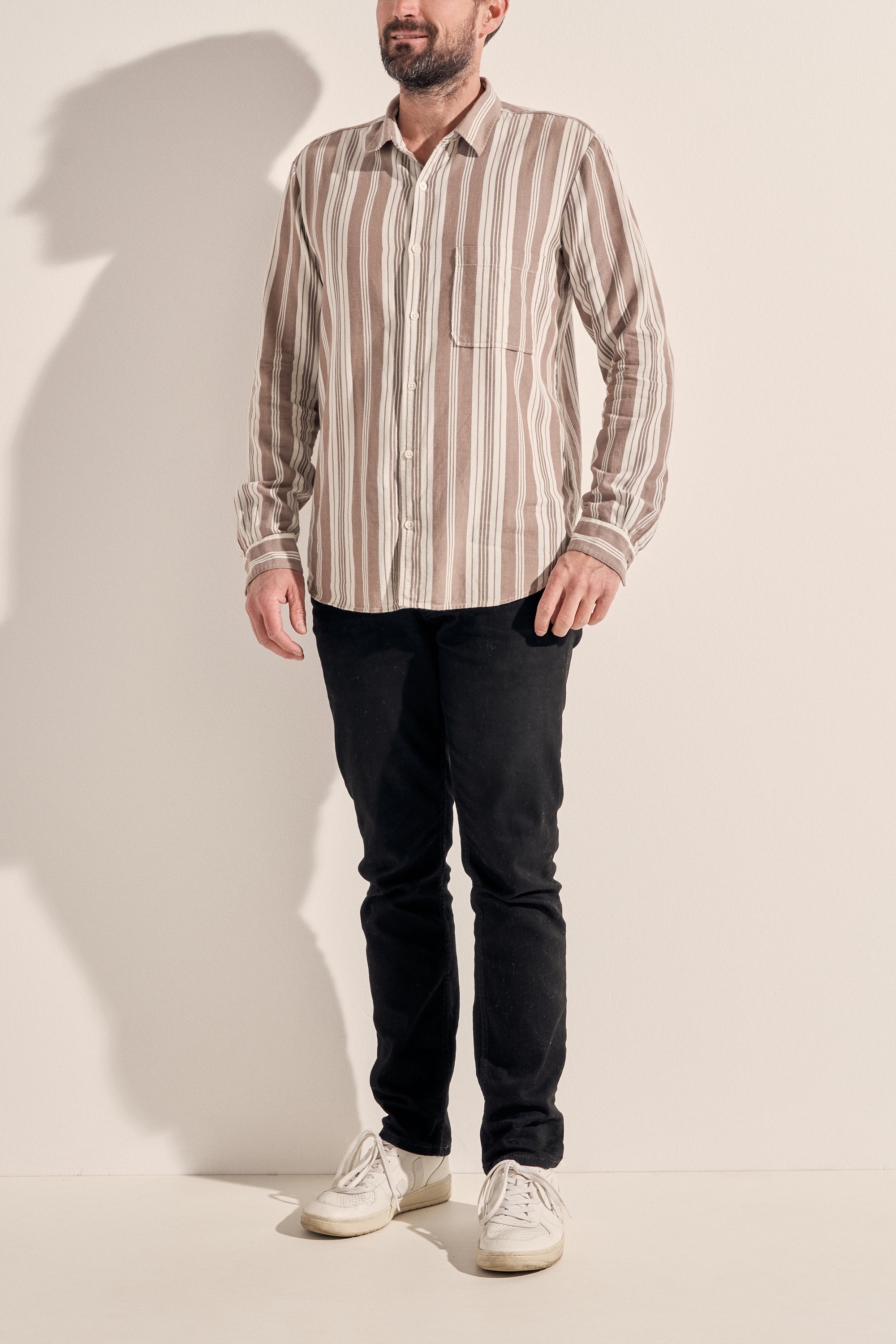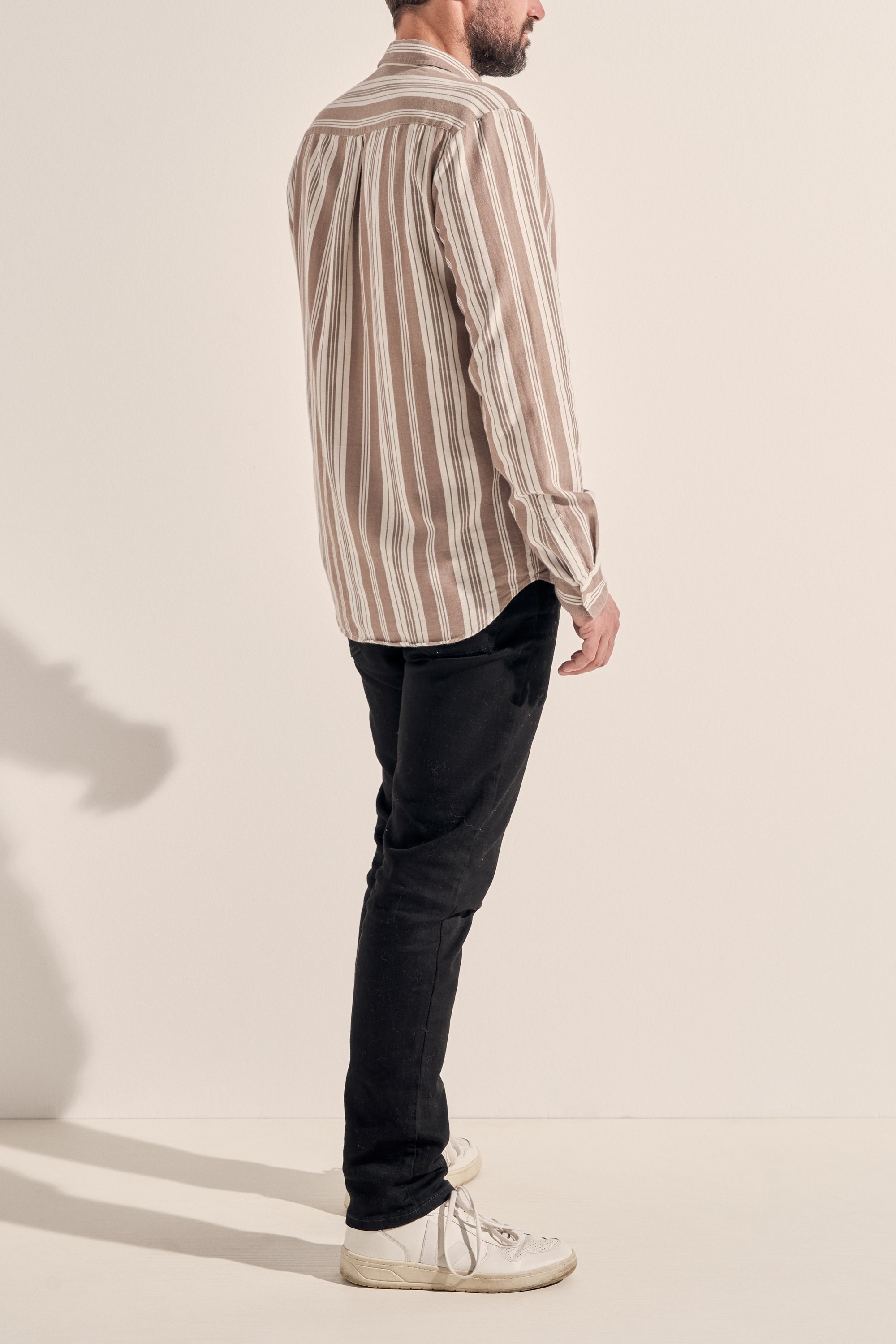 Our Adonis Men's Shirt is crafted from our signature handwoven stripe fabric. Designed for a relaxed fit, this long sleeve mens shirt will be a summer wardrobe staple!