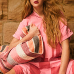 The Castor Caftan is a signature ILIO NEMA silhouette. It is intricately hand-woven to create the beautiful broken-stripe placement design. Stunning and simultaneously effortless making it the perfect dress for the beach or a Saturday lunch. Full-length with side slits and side seam pockets. An heirloom piece to be loved forever, it takes three days to weave on the handloom. The beautiful result of when traditional skills meet modern designs.