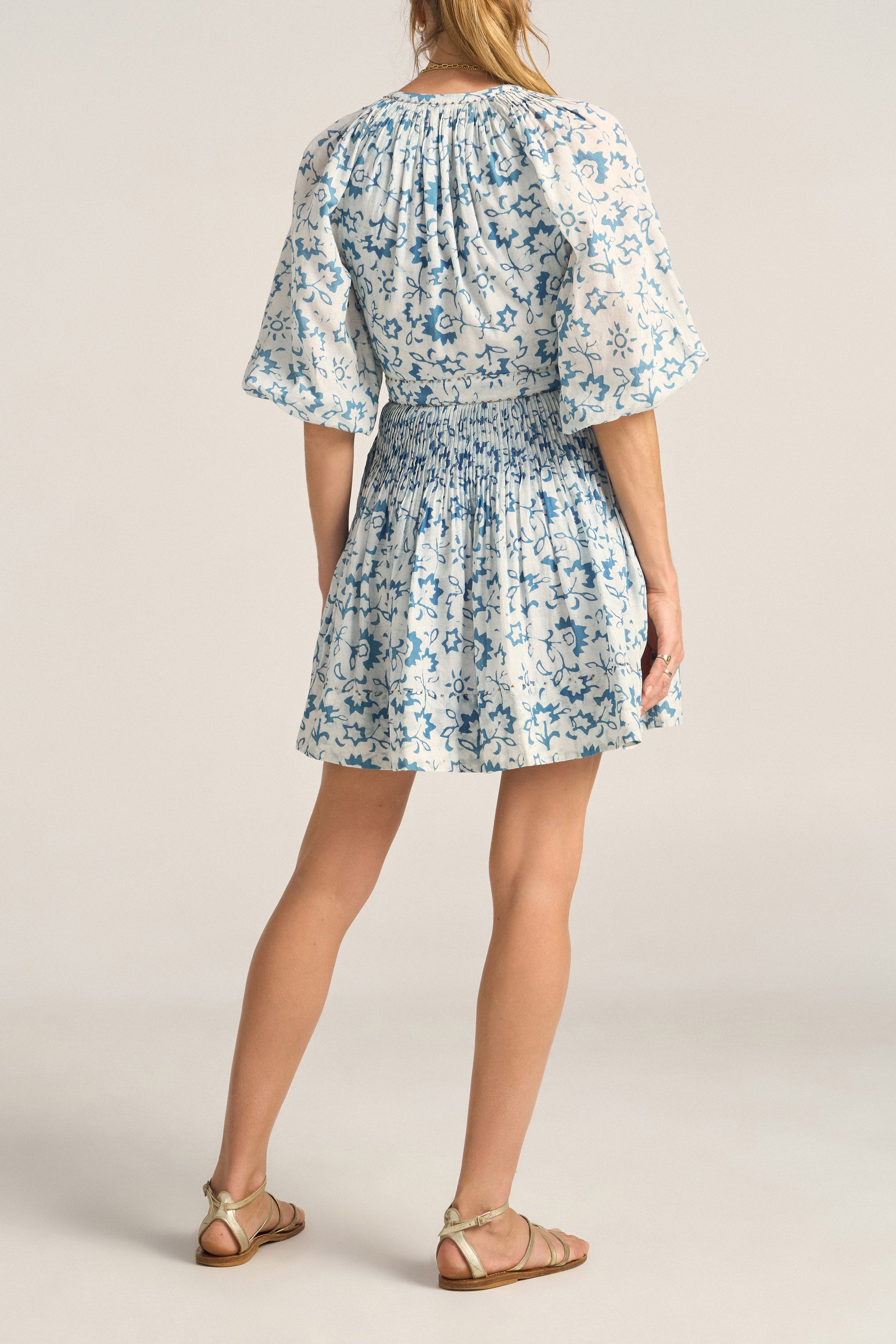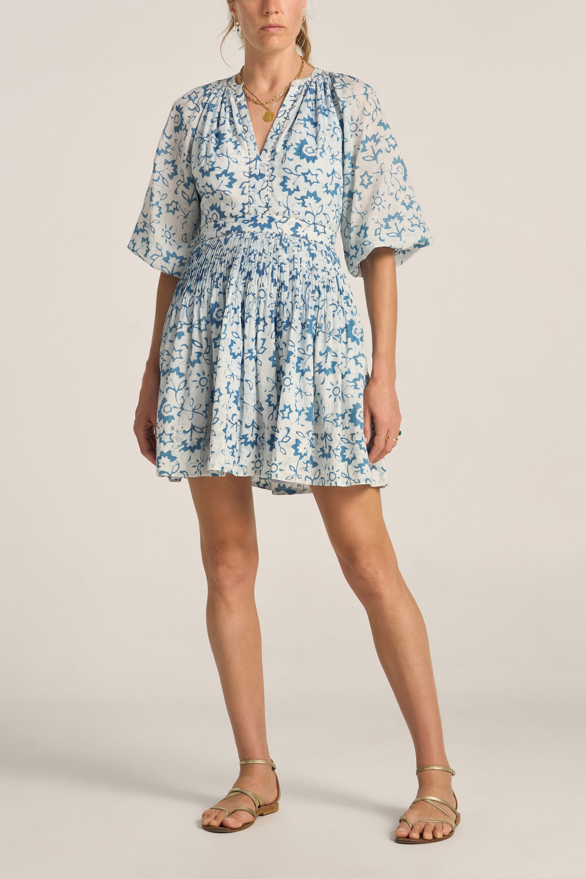 The Gaea Dress captures effortless femininity made in soft indigo batik printed cotton voile that feels as fresh as a summer breeze. Featuring a flattering V-neckline and softly puffed sleeves, it’s tailored with delicate pintucks at the waist to enhance shape while maintaining a relaxed, mid-length silhouette with a invisible side zip for ease. Perfectly balanced between elegance and ease, the Gaea Dress is a timeless piece that brings artisanal beauty to everyday dressing.