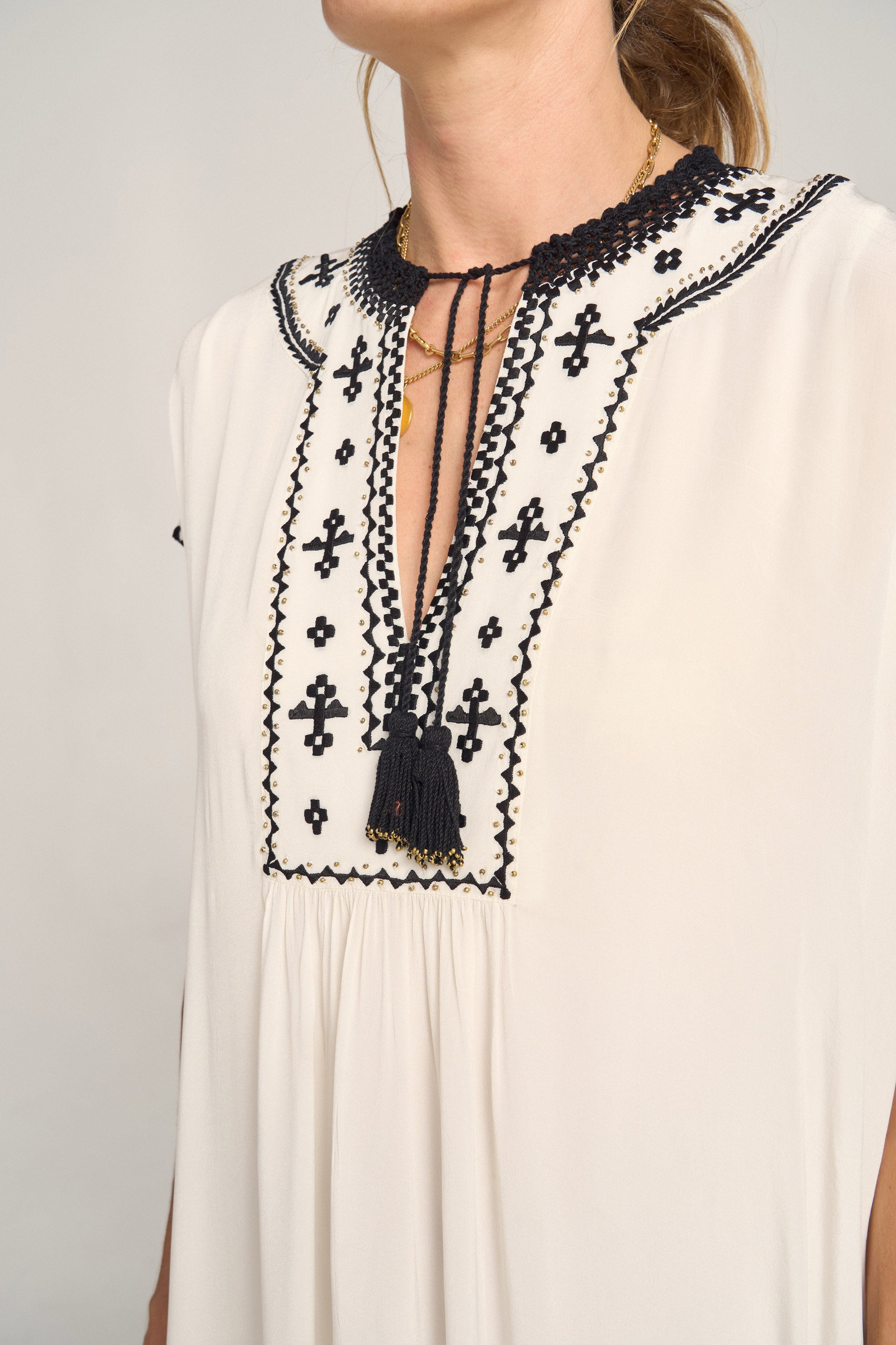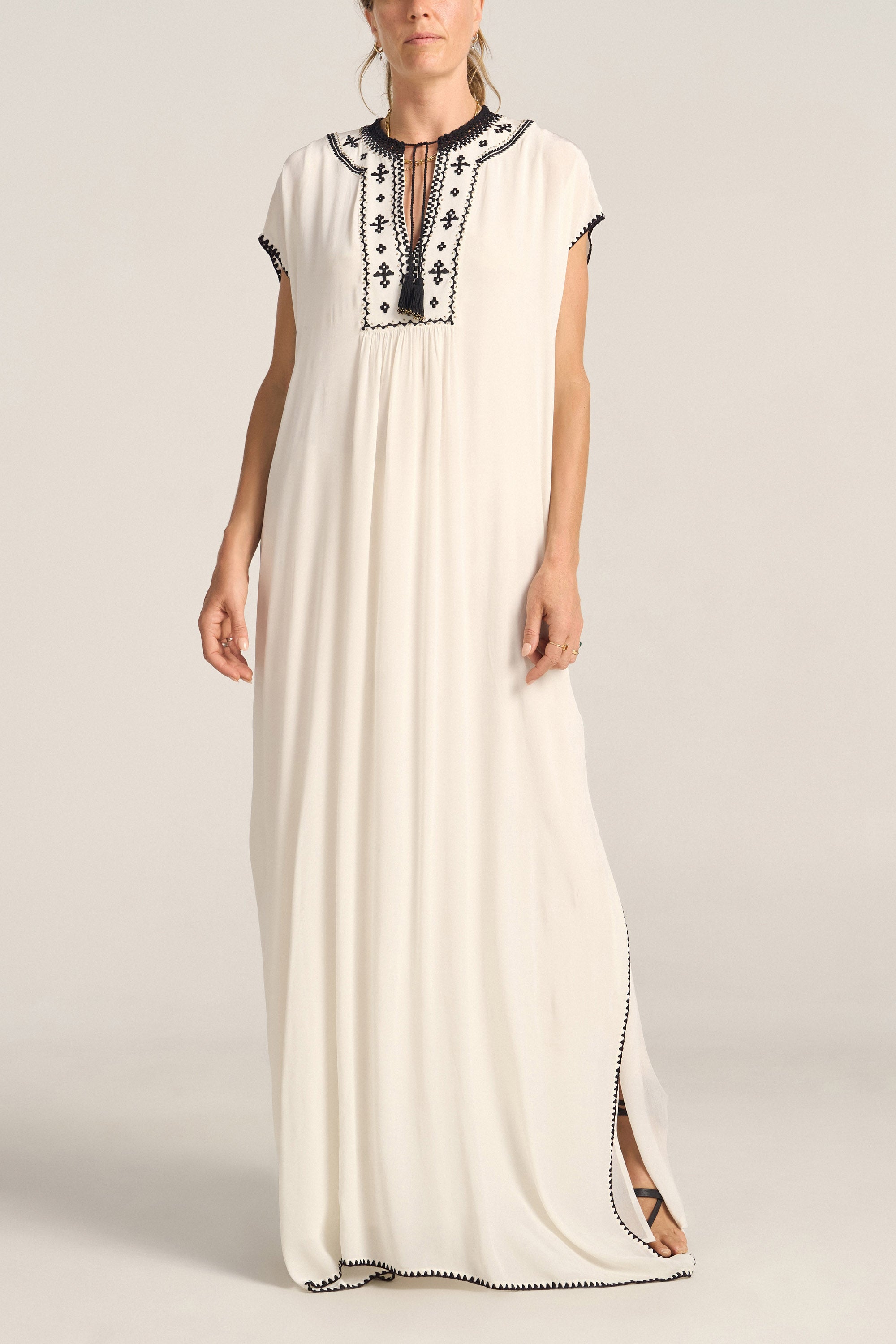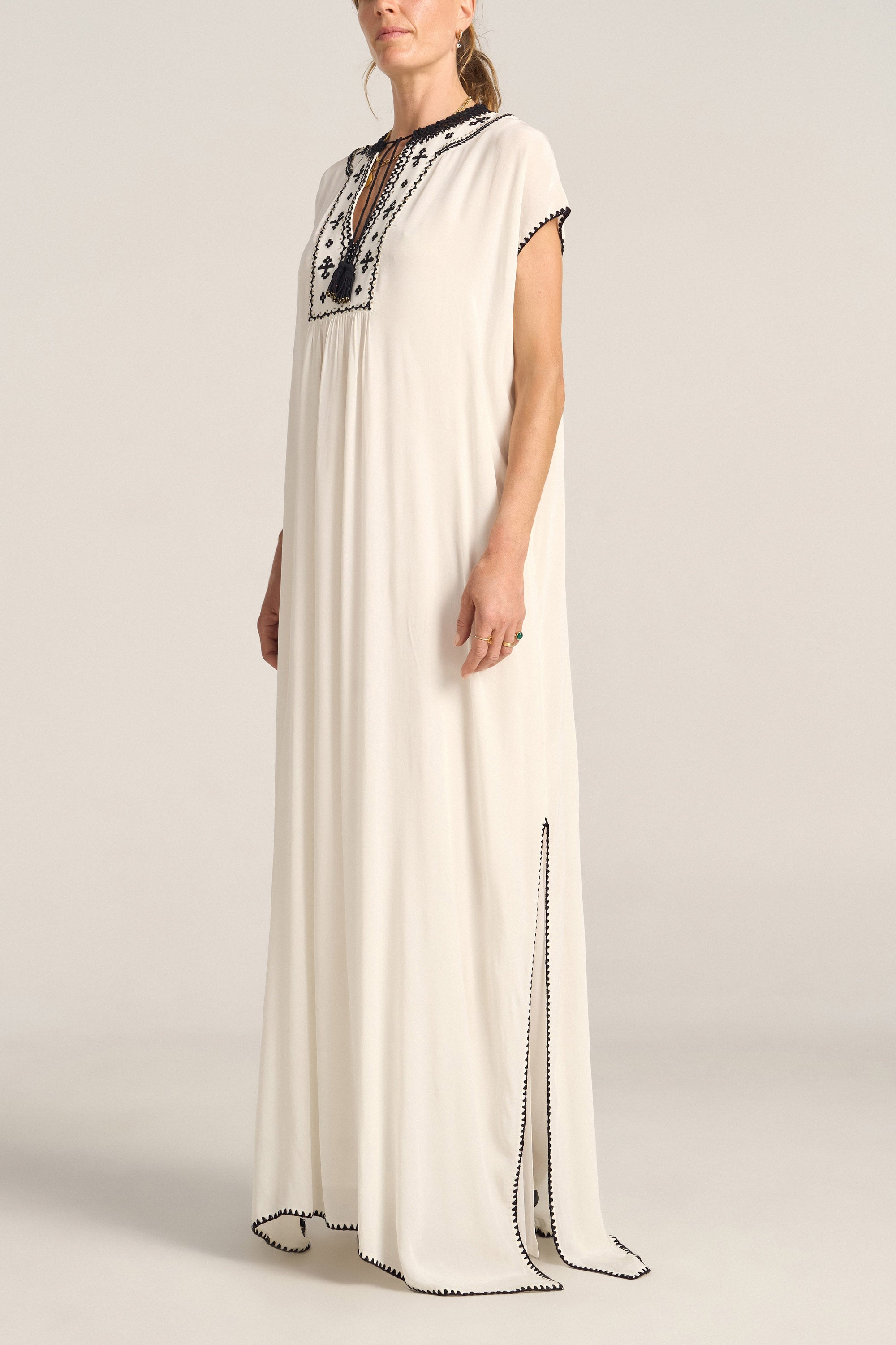 Luna Folk Embroidery Silk Caftan