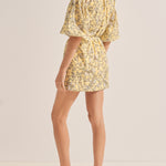 The Peithos Dress is mini-length with 3/4 length voluminous sleeves. Made from the softest organic cotton voile and printed with an Ilio Nema original batik-inspired print. It features delicate hand-beading details and hand-crochet neckband. This close-to-the-body shape can be dressed up or down increasing its versatility. The dress is lined with organic cotton voile and comes with a removable cotton waist tie featuring hand-made tassels.