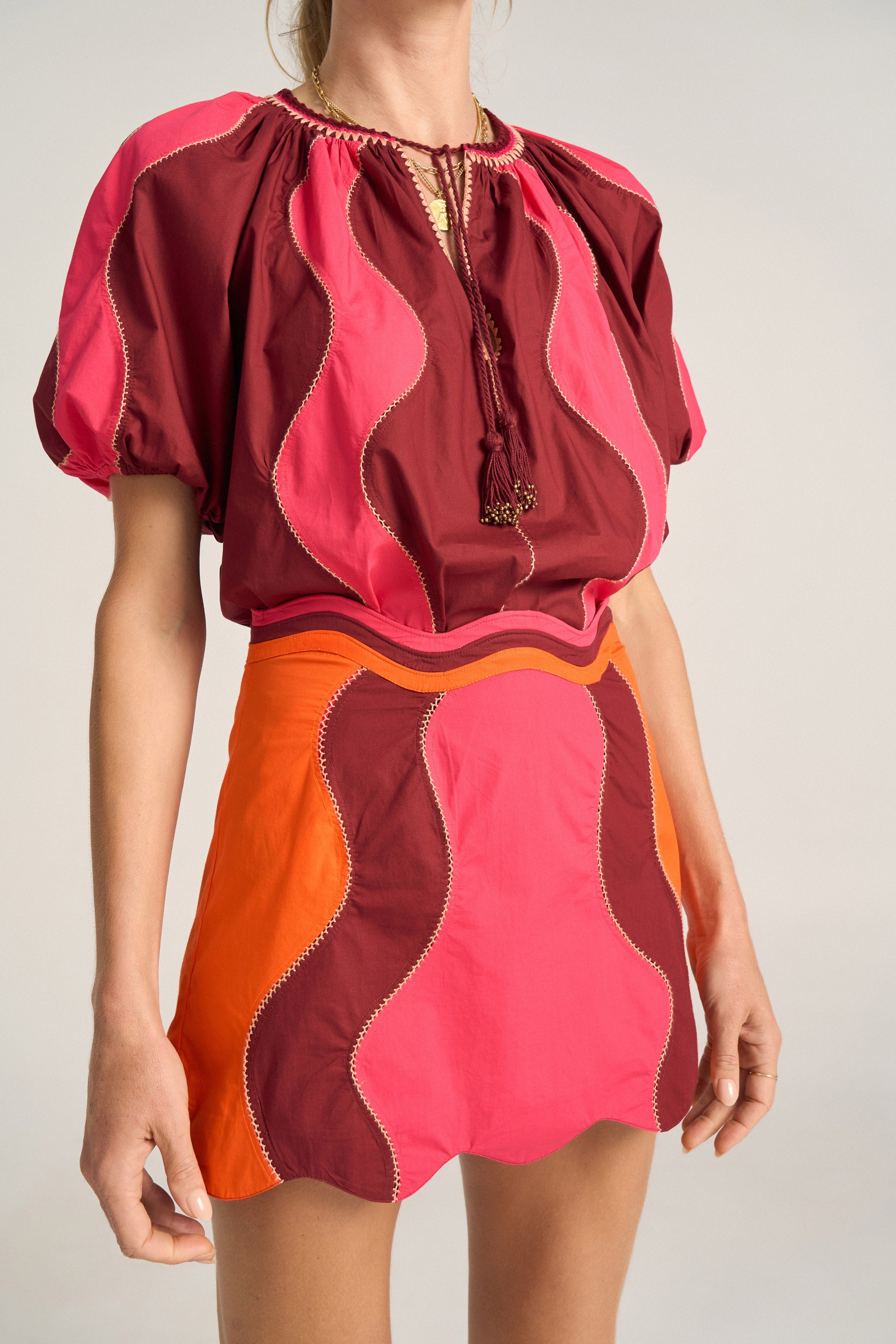 Scilla Red & Pink Wave Patchwork Poplin Skirt