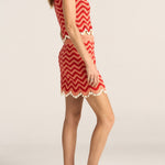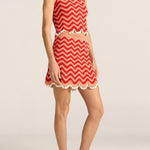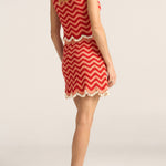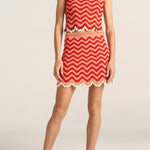 The Delphi Skirt is a hand-crocheted mini, crafted in vibrant red and pink wave-like stripes. Entirely hand made in Peru, in the finest Pima cotton, with a lightweight and textured finish, this piece offers a refined and playful take on artisanal craft. Cowrie shells adorn the hemline, adding a tactile tropical touch to this playful silhouette. Rich in texture and artisanal detail, this piece pairs perfectly with the Cynthia Top for a coordinated summer set. A celebration of colour and craft, the Delphi Skirt brings effortless charm to warm days and coastal escapes.