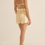 The Remus Shorts are crafted from luxurious buttery yellow Killini Stripe silk, offering both elegance and comfort. With an elastic waist, drawstring tie-front, loose-fitting legs, and side pockets, they boast a relaxed, boyfriend-boxer short vibe. Pair them effortlessly with the Arion Shirtdress for a perfectly coordinated, stylish look.
