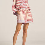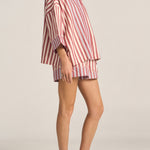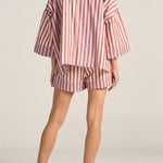 Relax into effortless style with the Halcyon Shirt, an oversized silhouette designed for laid-back sophistication. Featuring a subtle mix of red and white stripe paneling alongside red and blue stripes, this buttoned down shirt blends classic tailoring with a fresh, artisanal edge. Perfectly roomy and endlessly versatile with its wide cropped sleeves, the Halcyon Shirt is your go-to piece for easy pairing with the Talus Shorts.