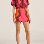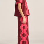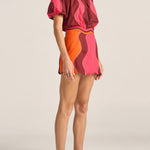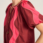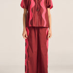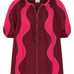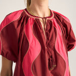 Lybia Red & Pink Wave Patchwork Poplin Shirt