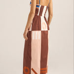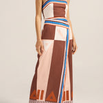The Aethra Dress is a feminine silhouette that moves with ease and confidence. Crafted in our Sarong print, a warm blend of brown, pink and white tones. It features a straight neckline with fine adjustable shoulder straps and a softly ruched elastic back for comfort and easy fit. The bodice and waist are delicately fitted while the skirt is wrapping diagonally in the manner of a sarong, adding laid-back touch to an elegant look. Effortless yet refined, the Aethra Dress embodies relaxed elegance for sun-drenched days and balmy evenings alike.